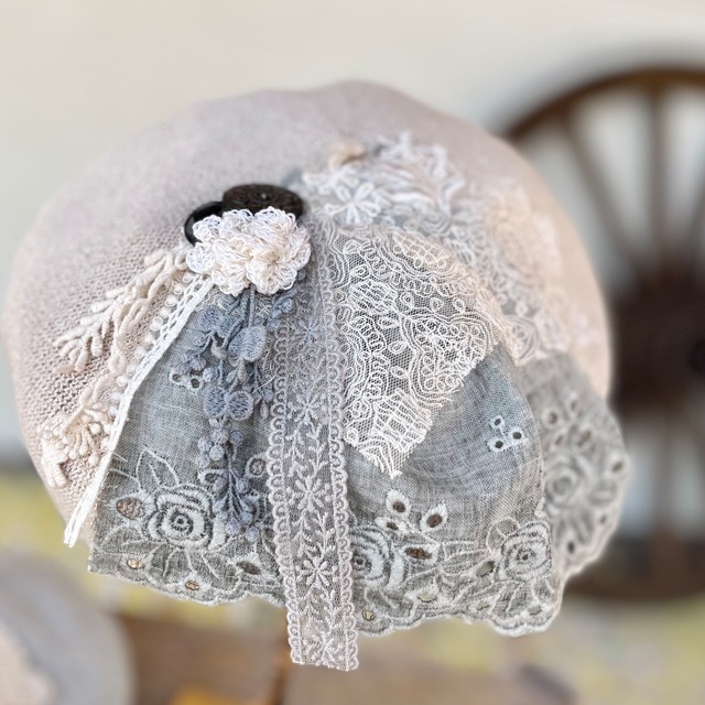 25s-082 一点モノ♡レースアレンジベレー帽(GY-B)