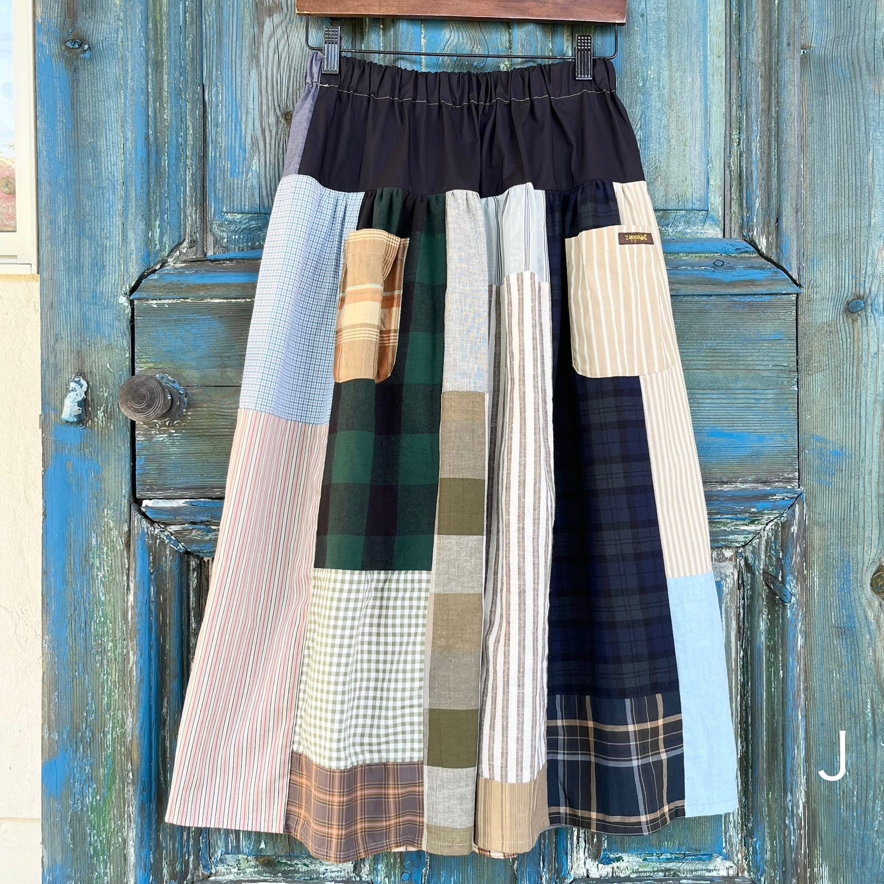 ぐるりとどの部分を前にしてもおしゃれに決まるパッチワークスカートです!