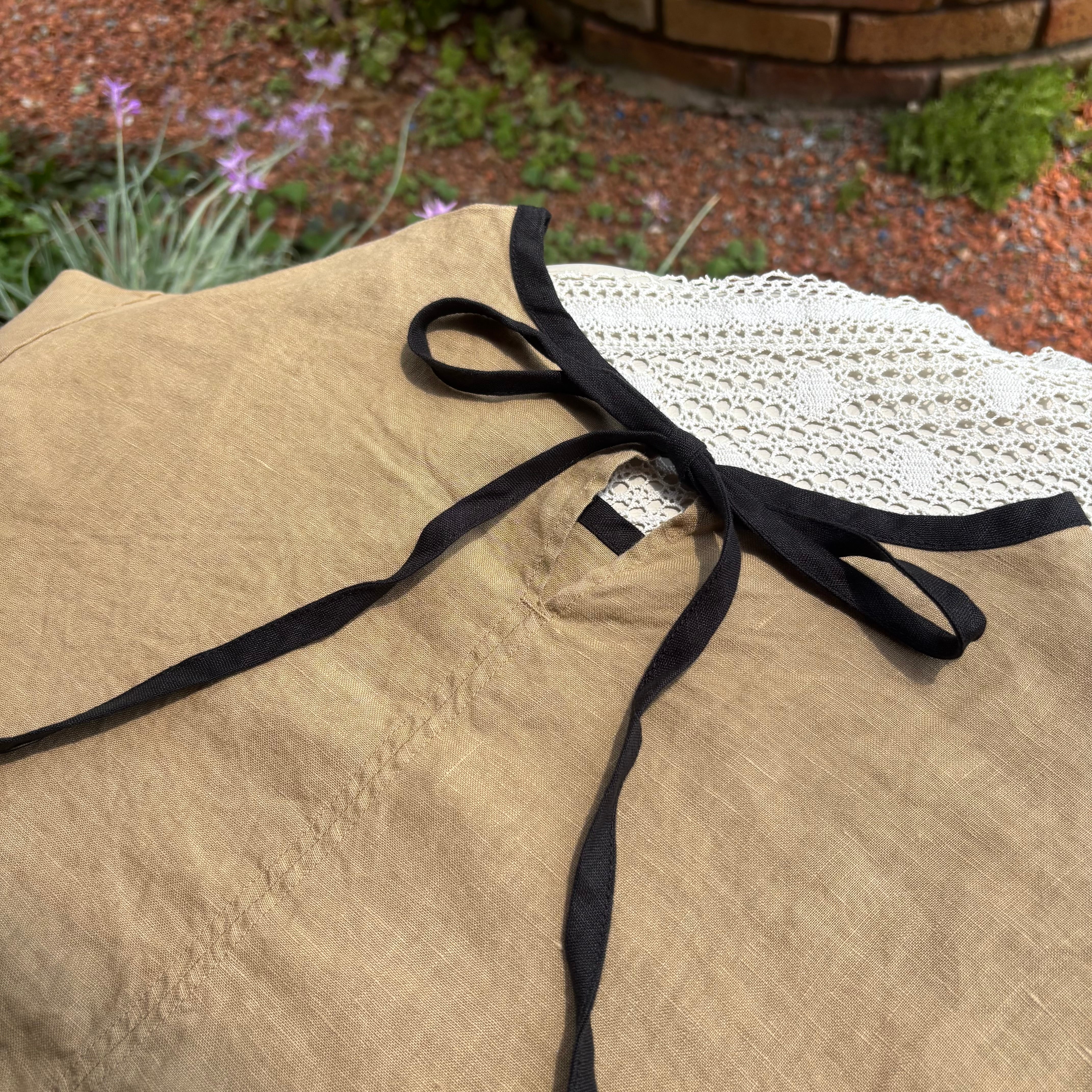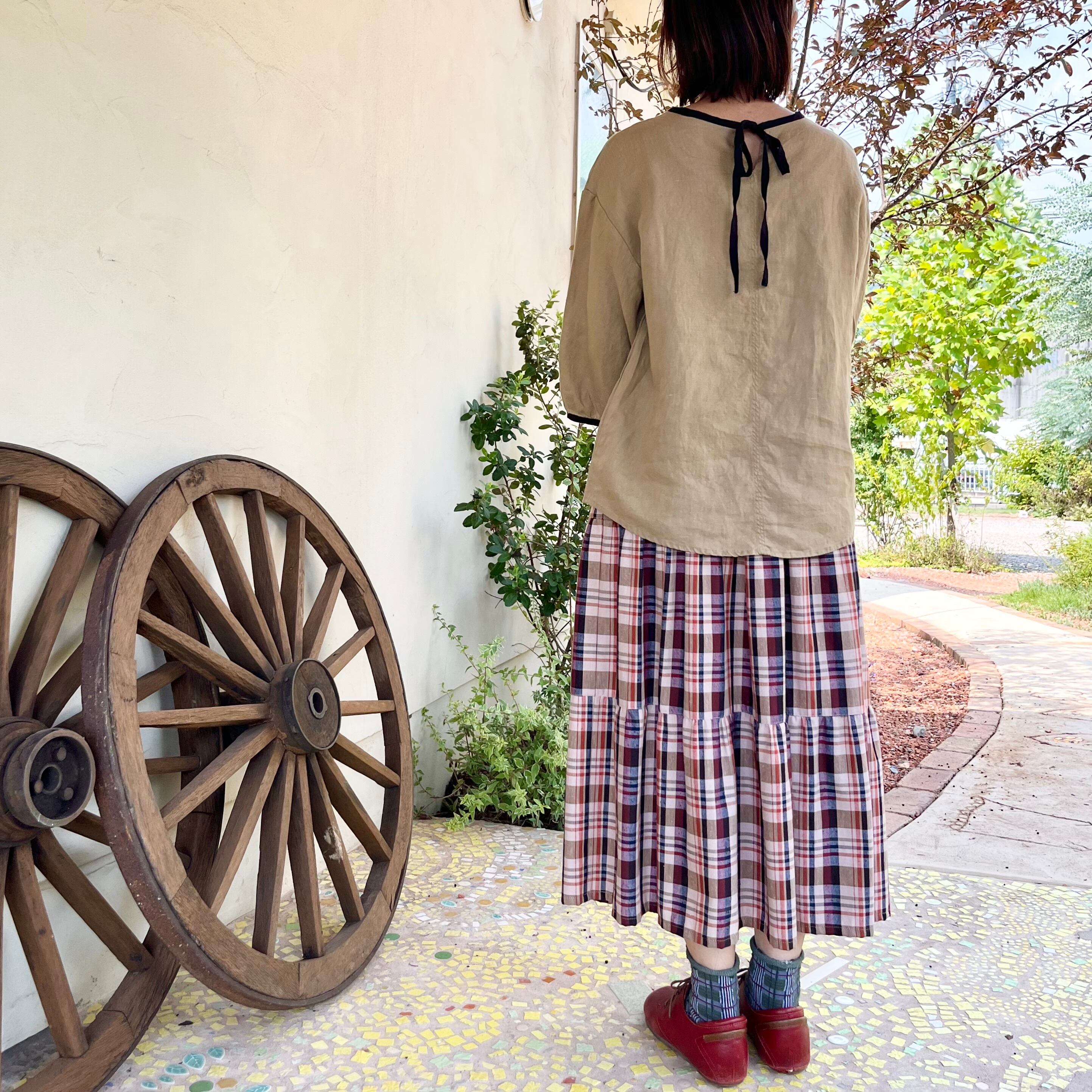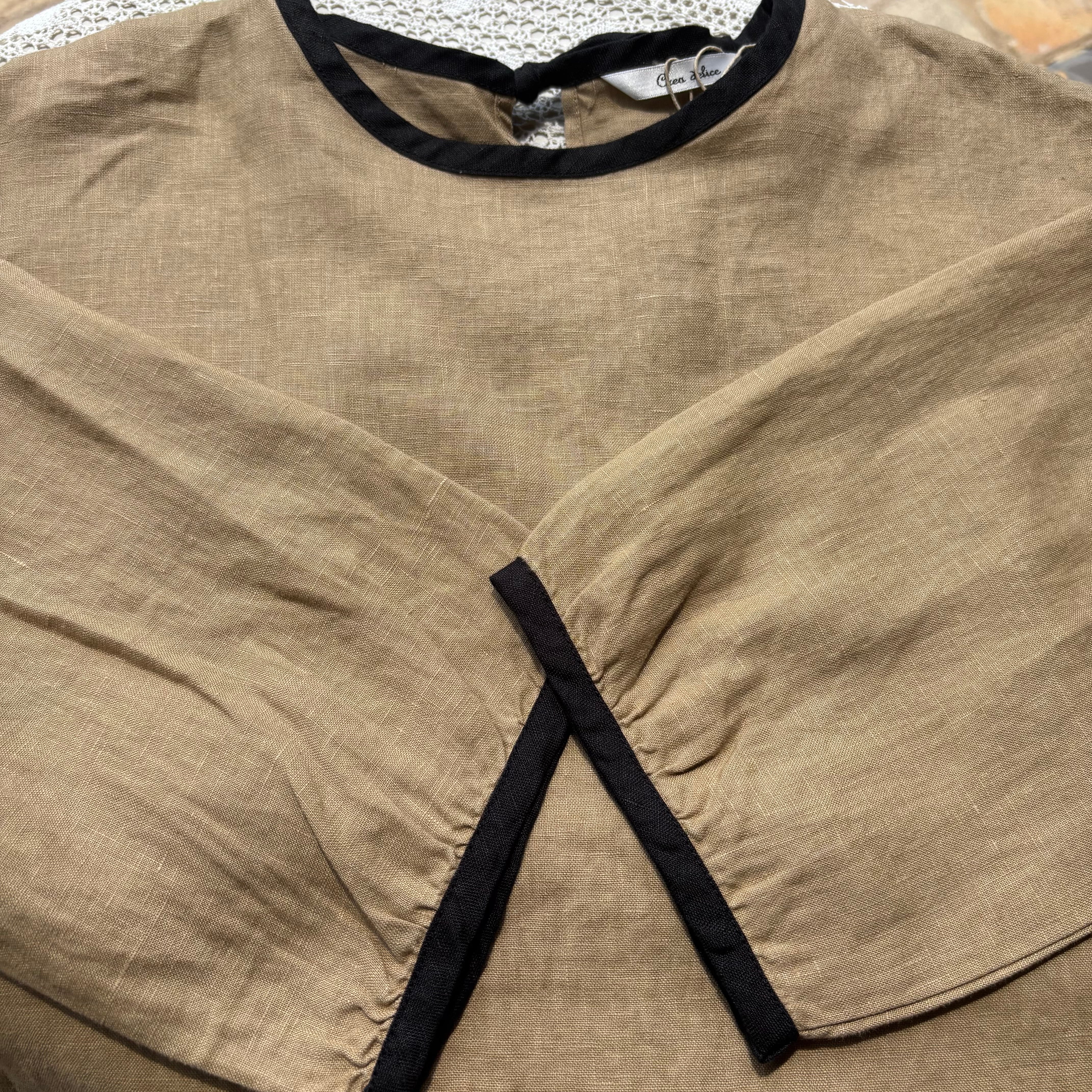 落ち着きのあるバイカラーが可愛いリネンブラウス。