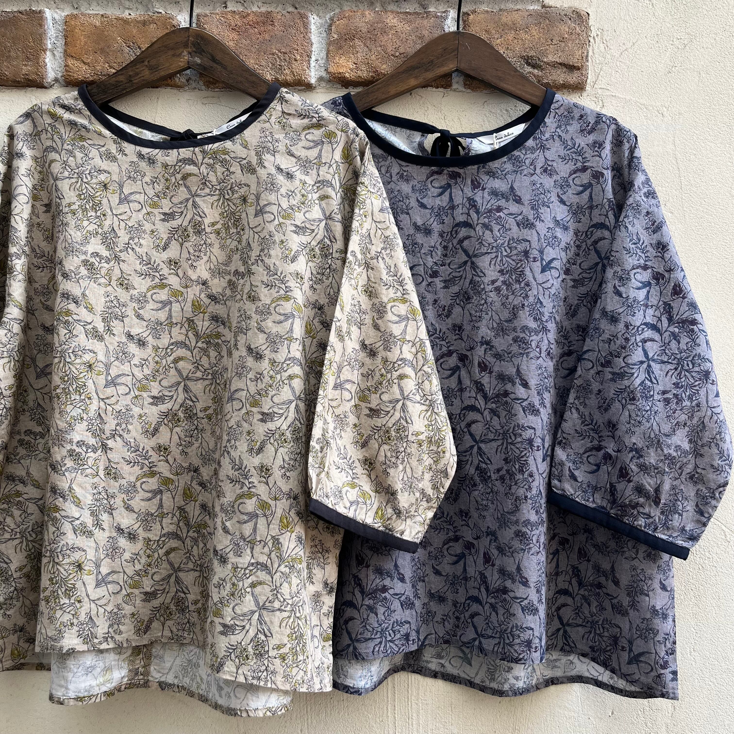 華やかなフローラルプリントが施された配色リボン襟ブラウスです。