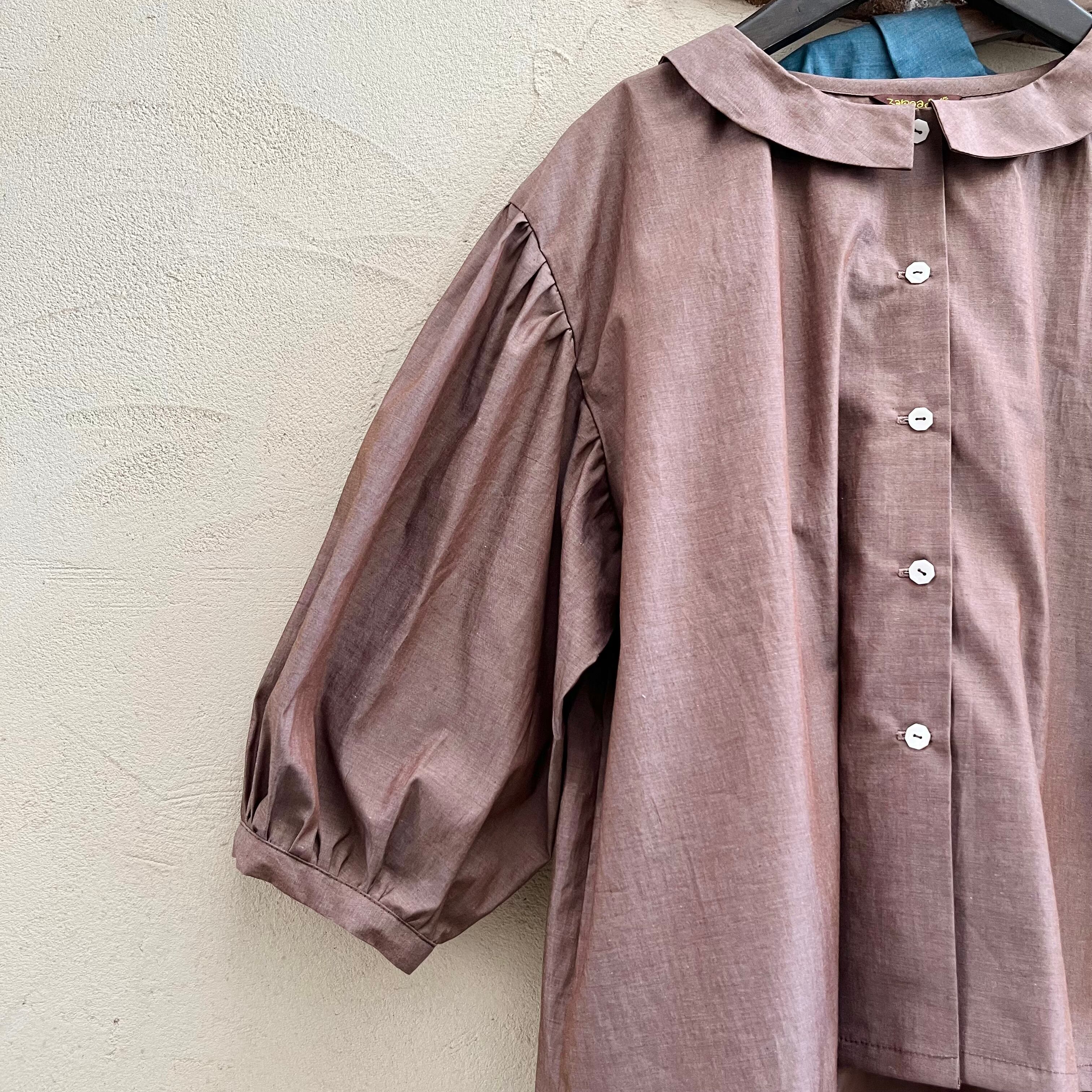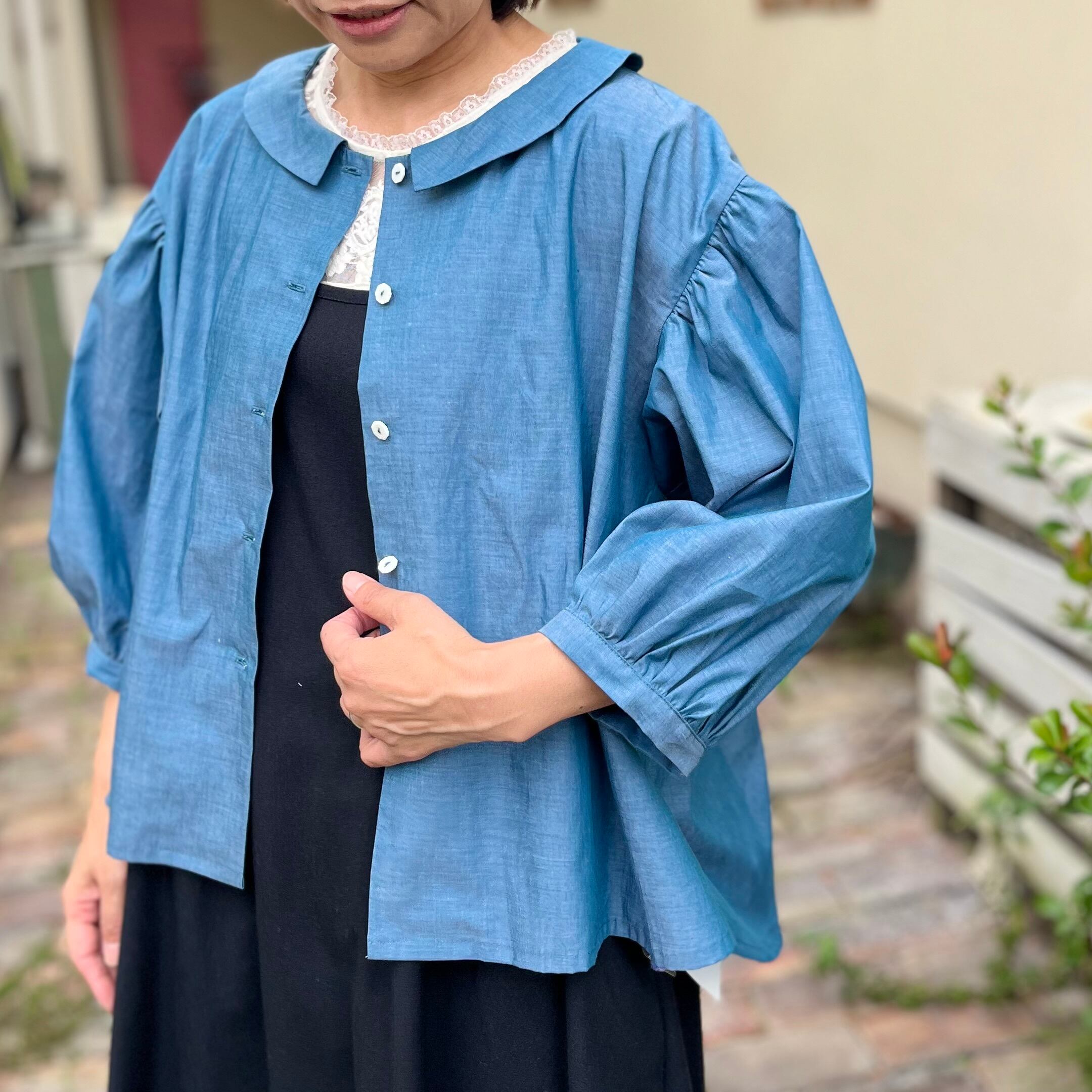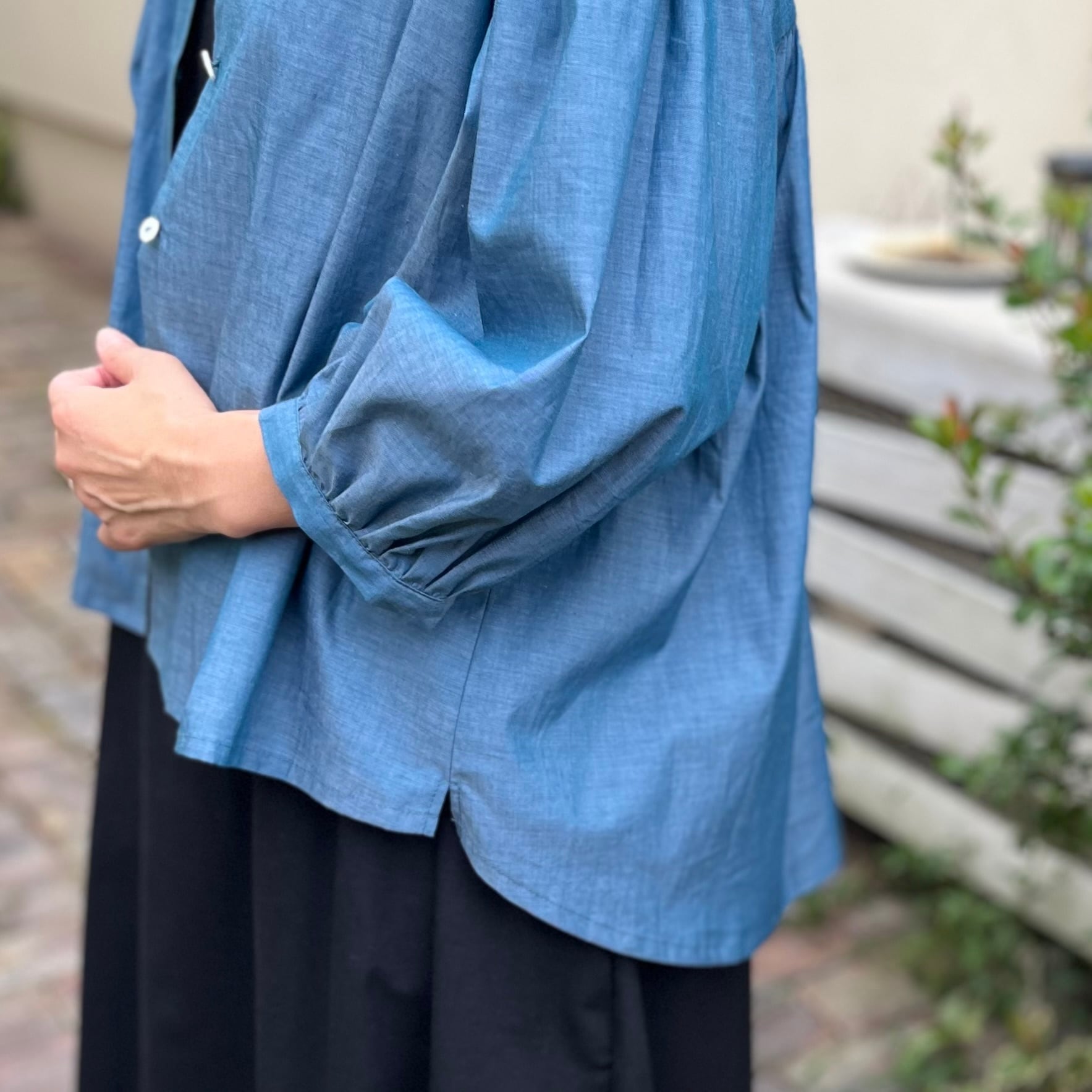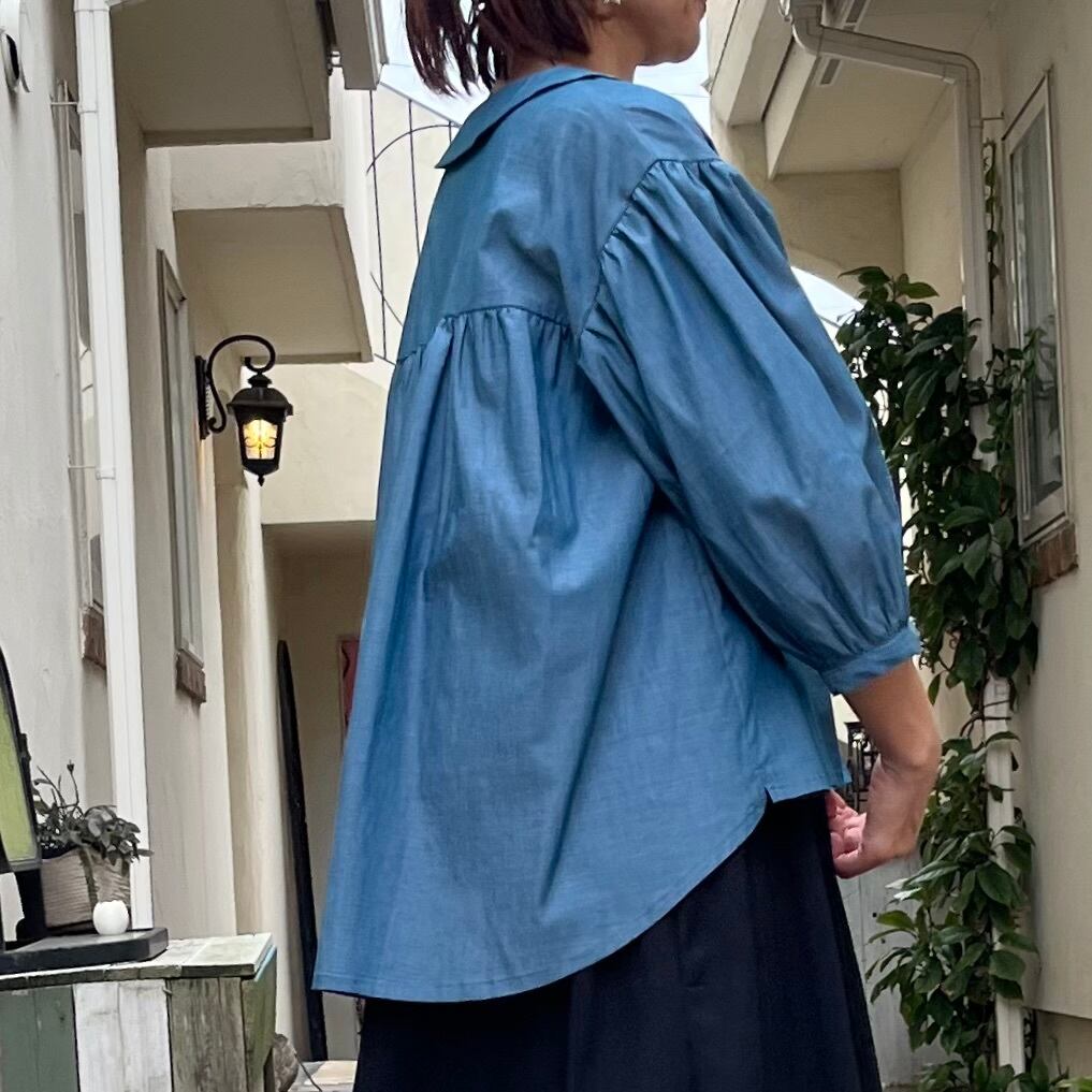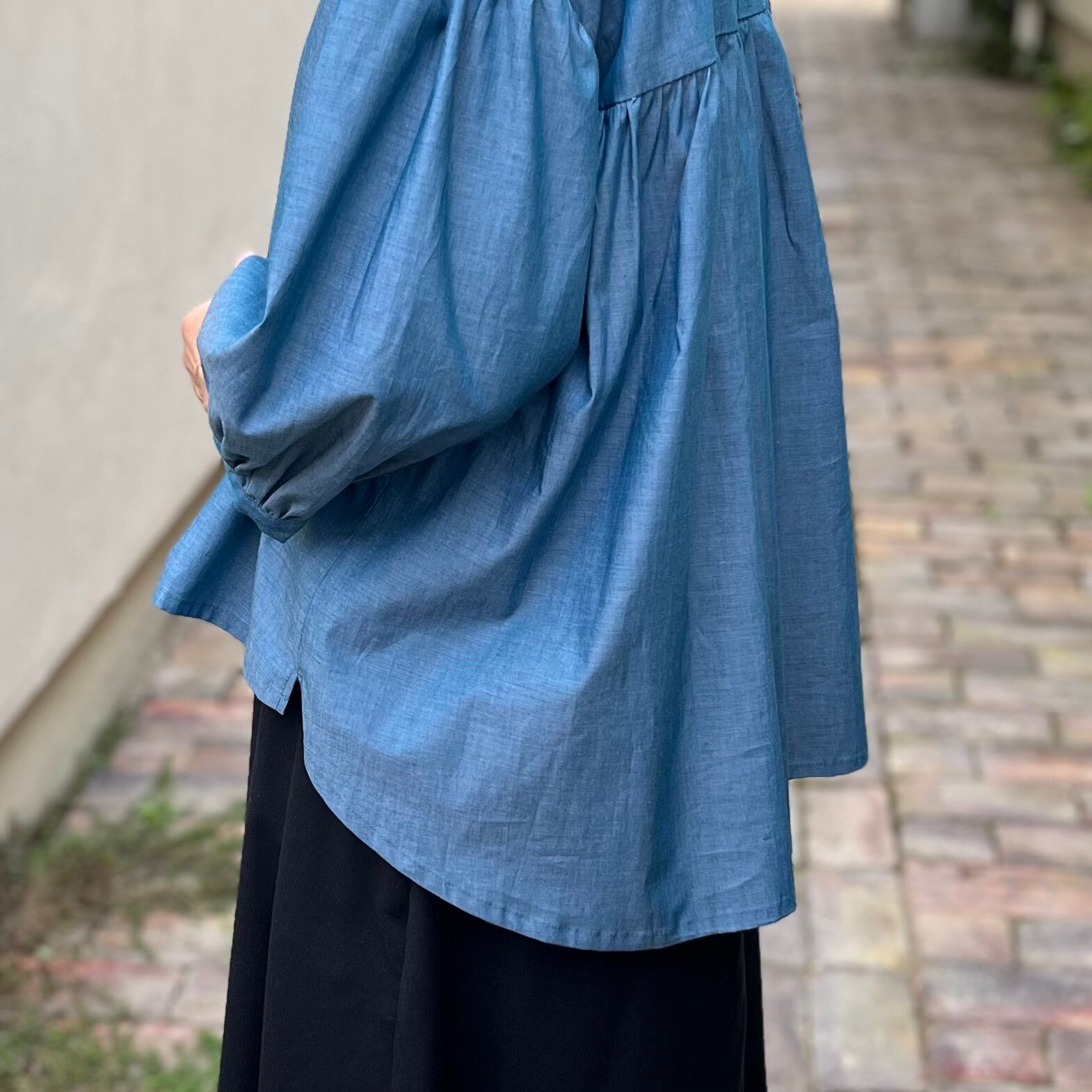 経糸と緯糸を違う糸で織り上げたシャンブレー生地だから、光を受けて輝くこのブラウスはまるで虹のよう♪