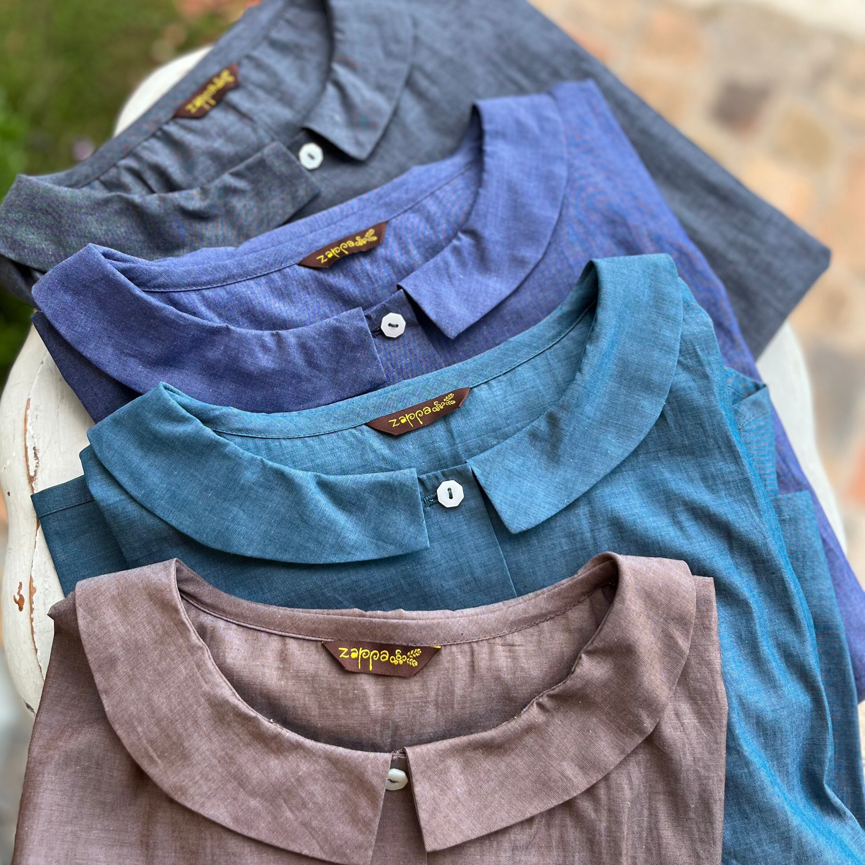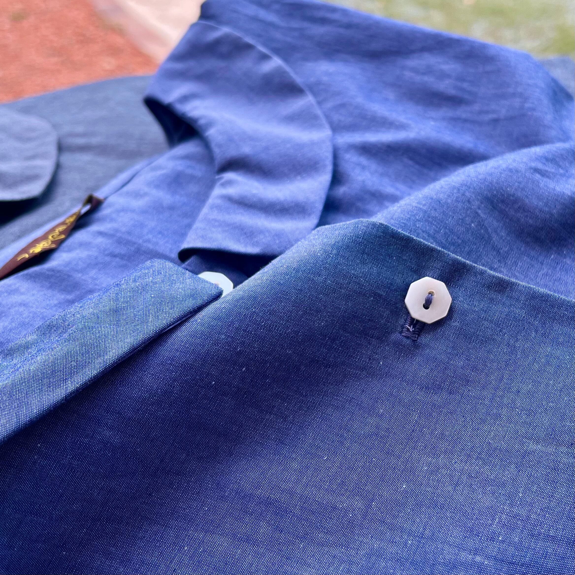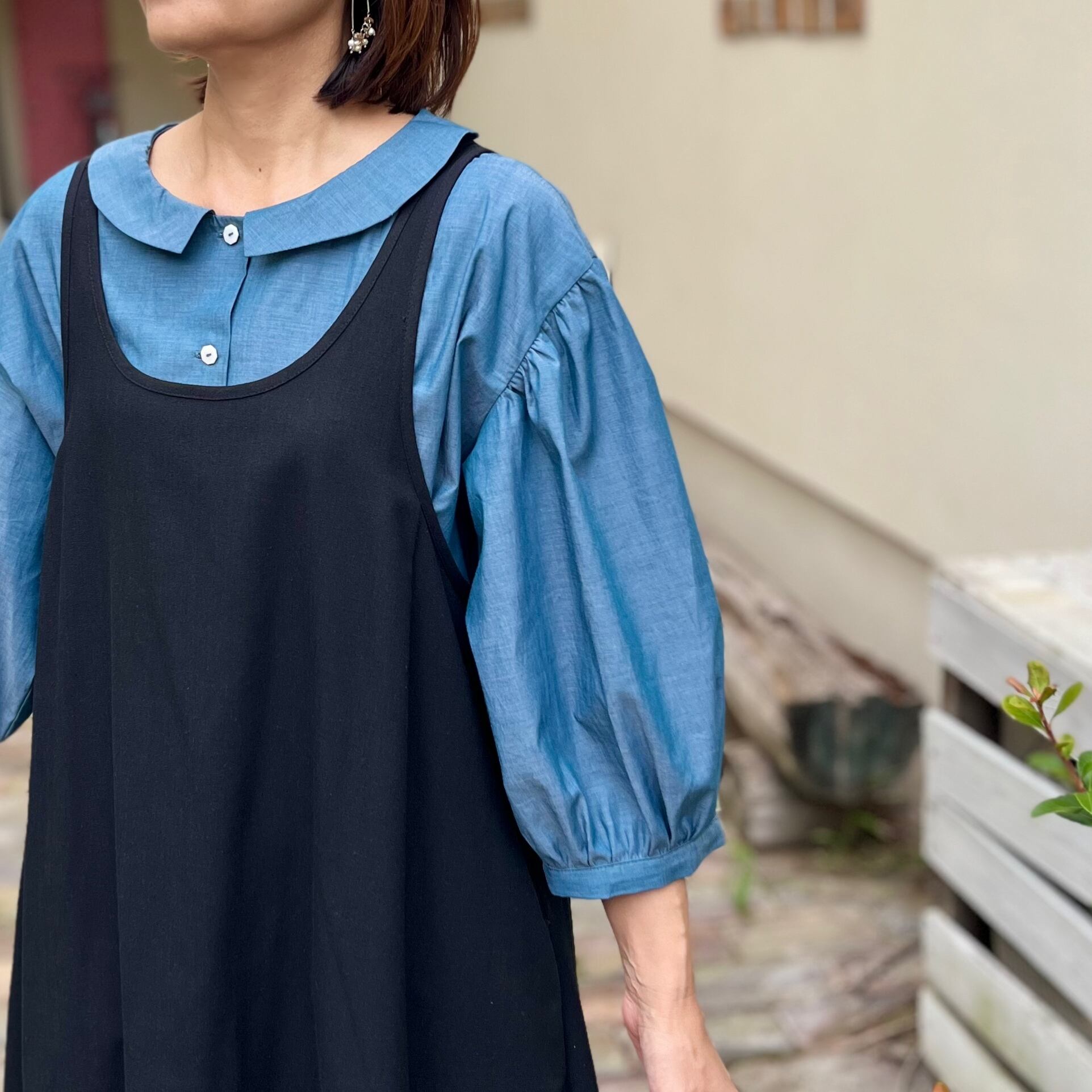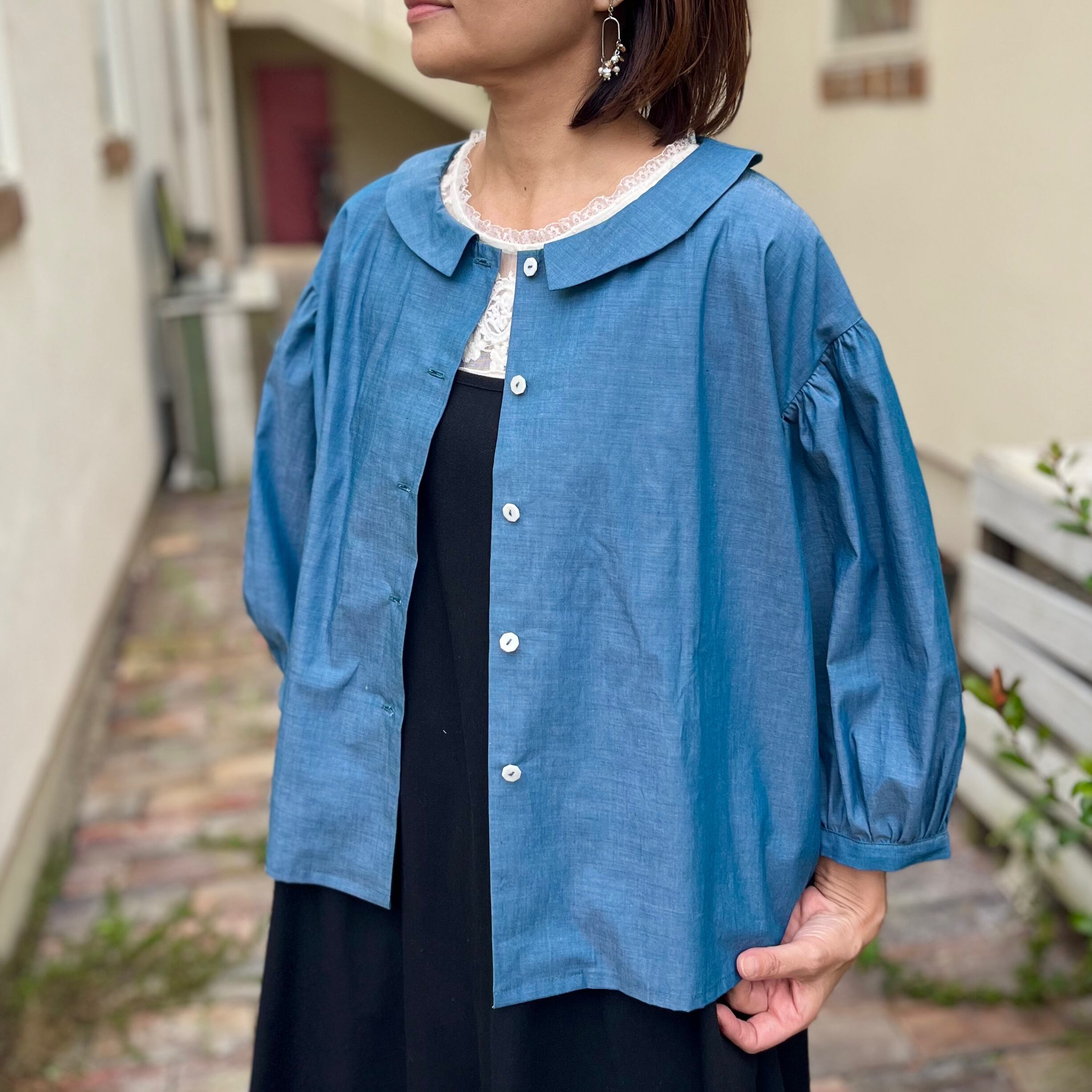 経糸と緯糸を違う糸で織り上げたシャンブレー生地だから、光を受けて輝くこのブラウスはまるで虹のよう♪