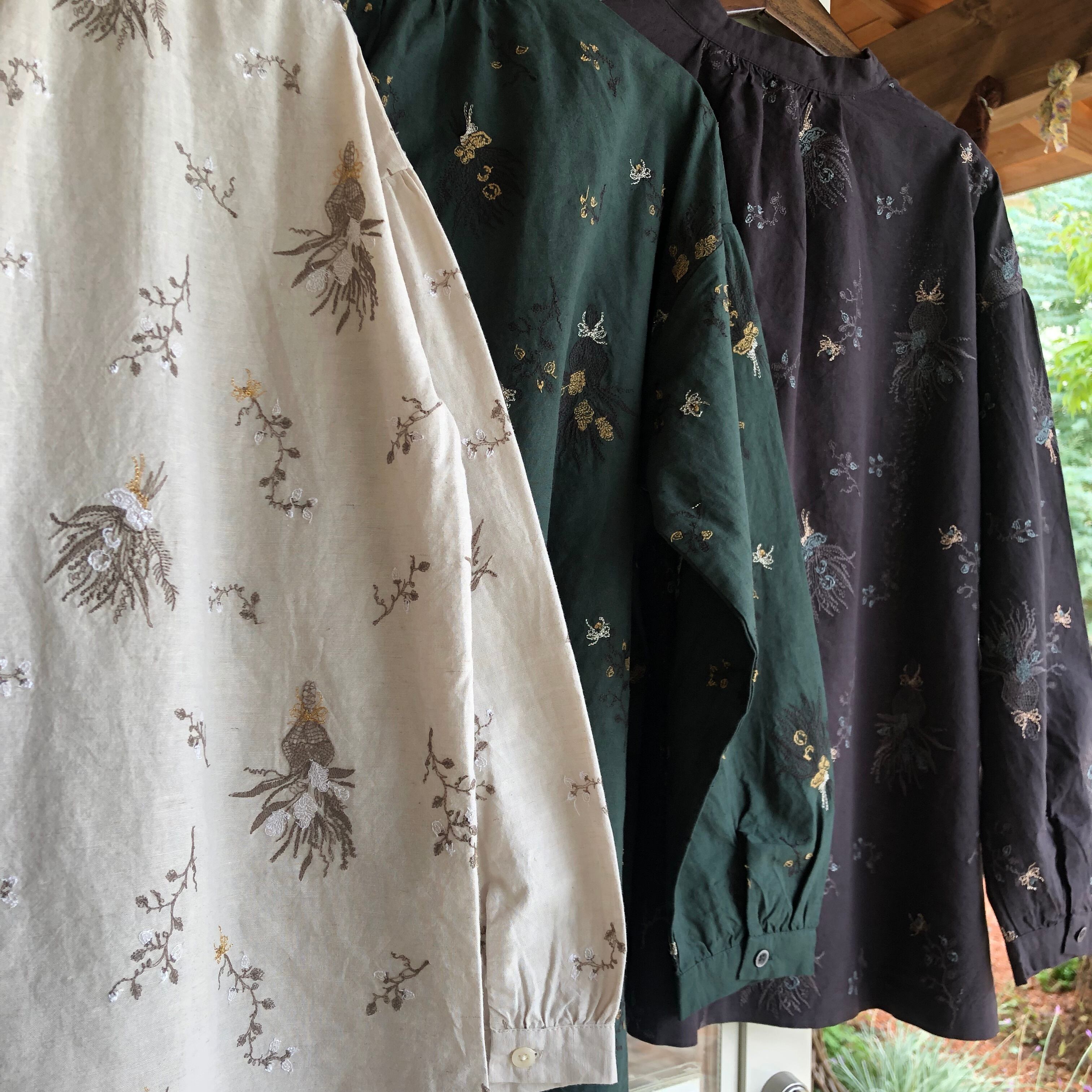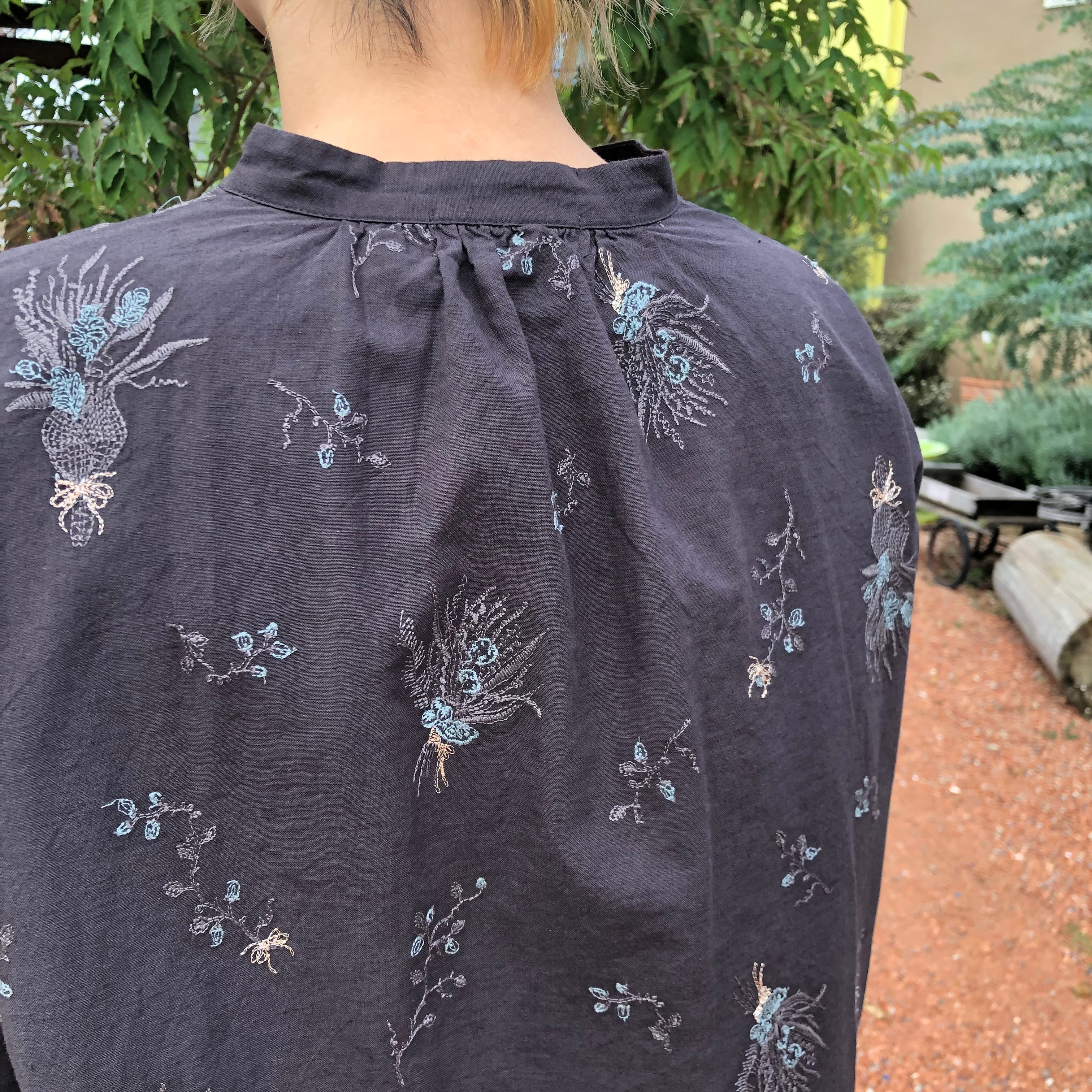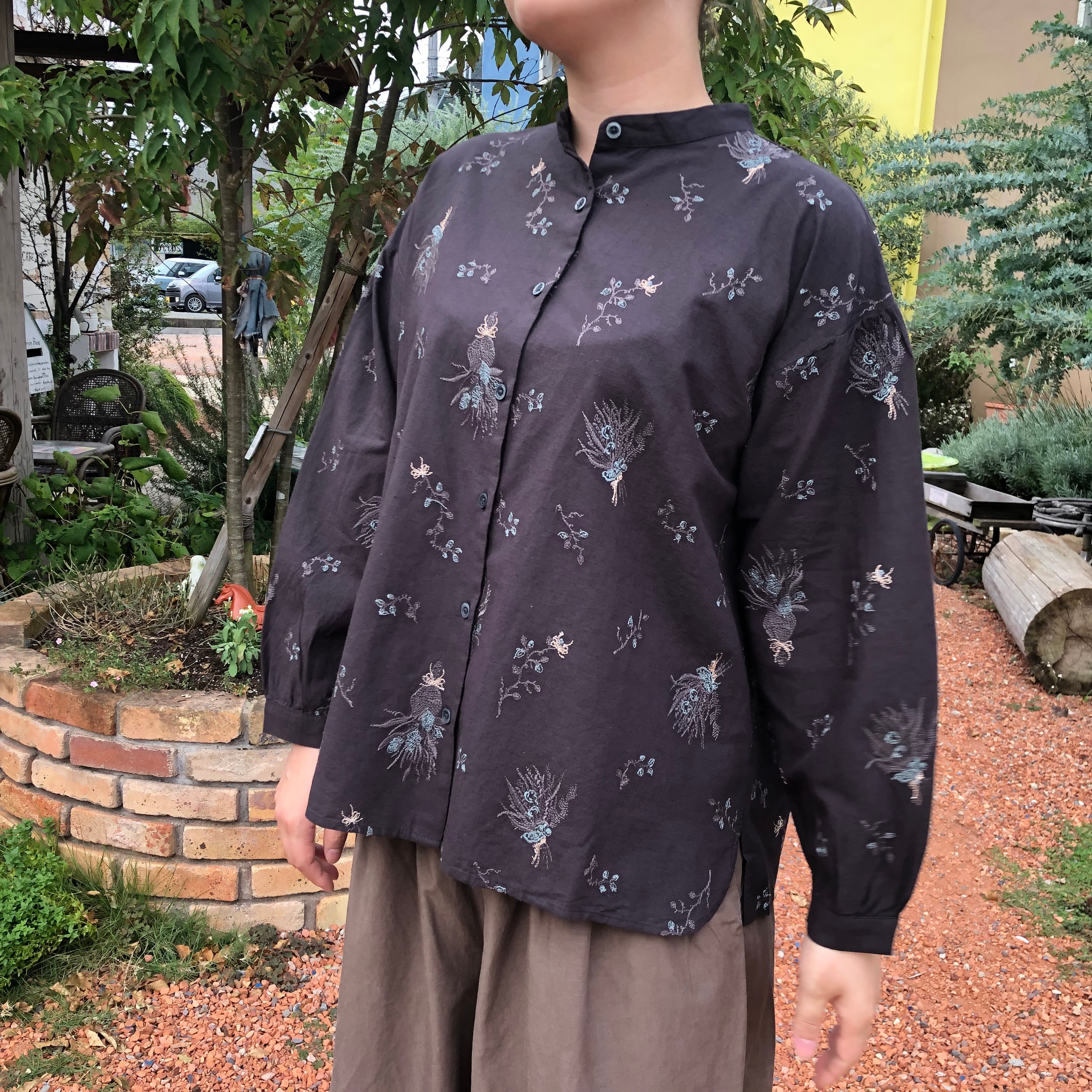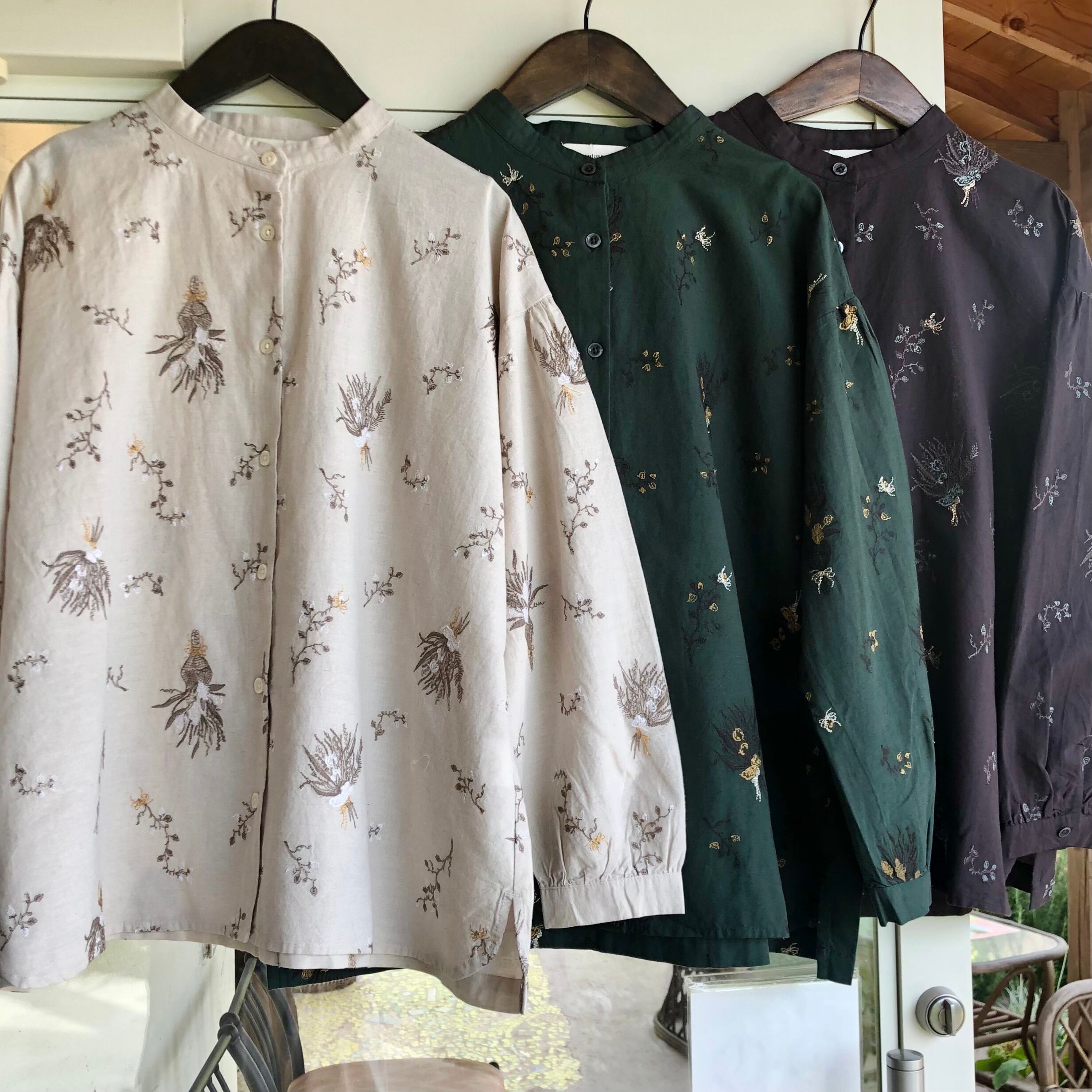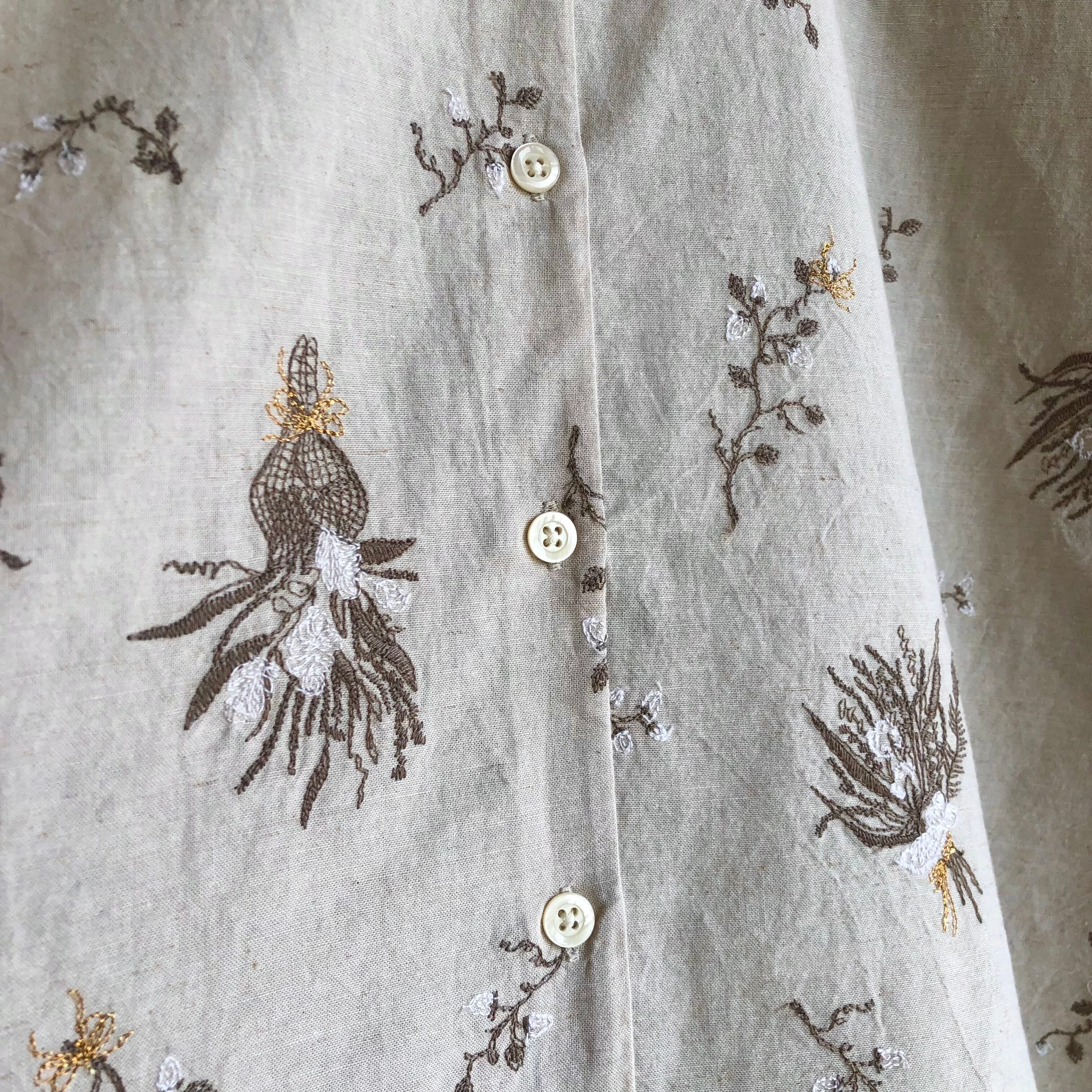 25s–145 綿麻平織総柄花刺繍ブラウス