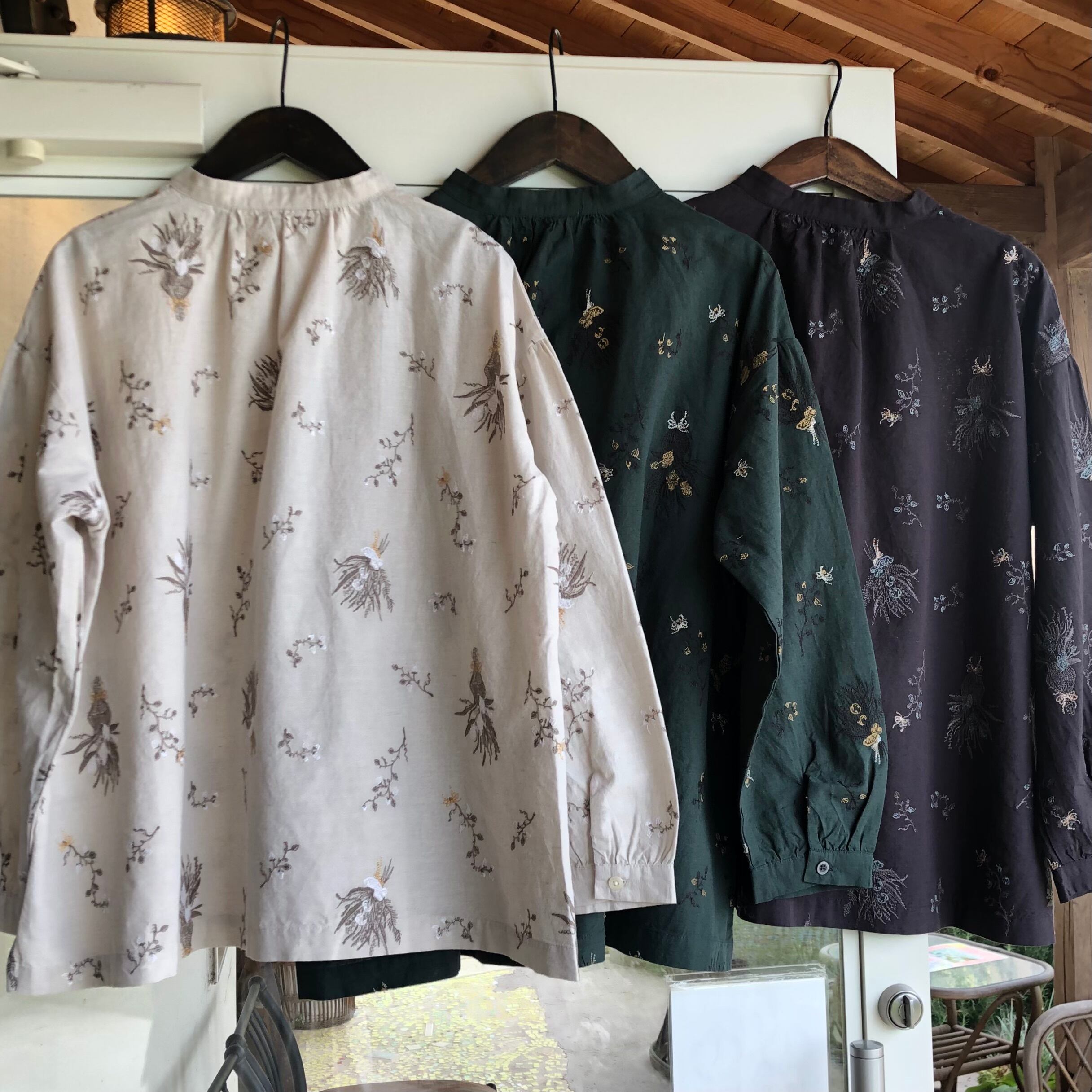華やかな花刺繍が施されたおしゃれなブラウス。