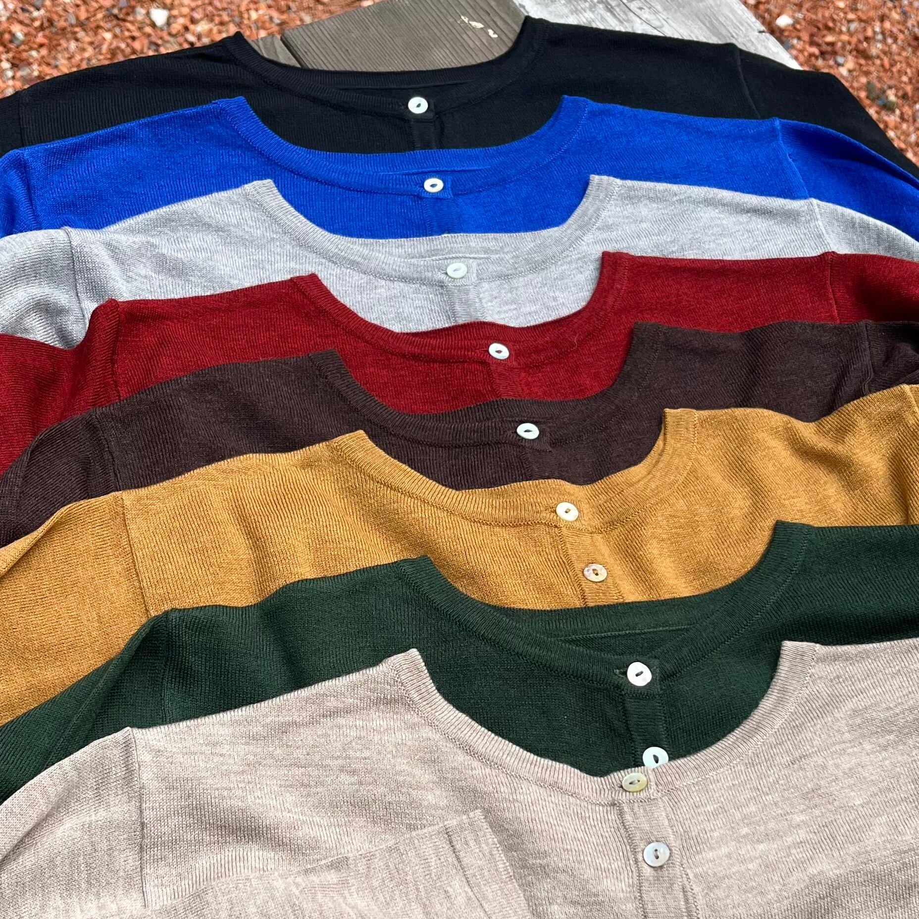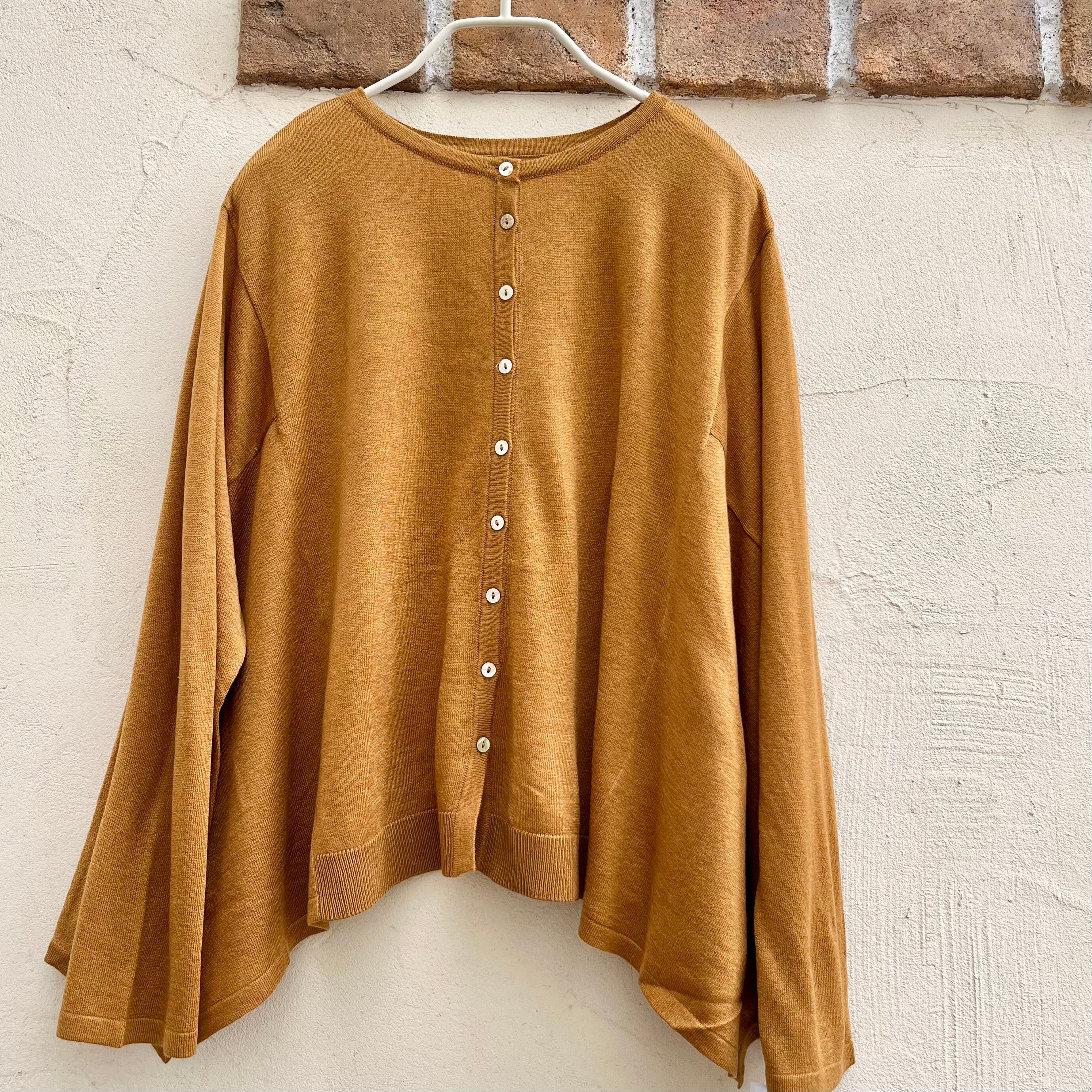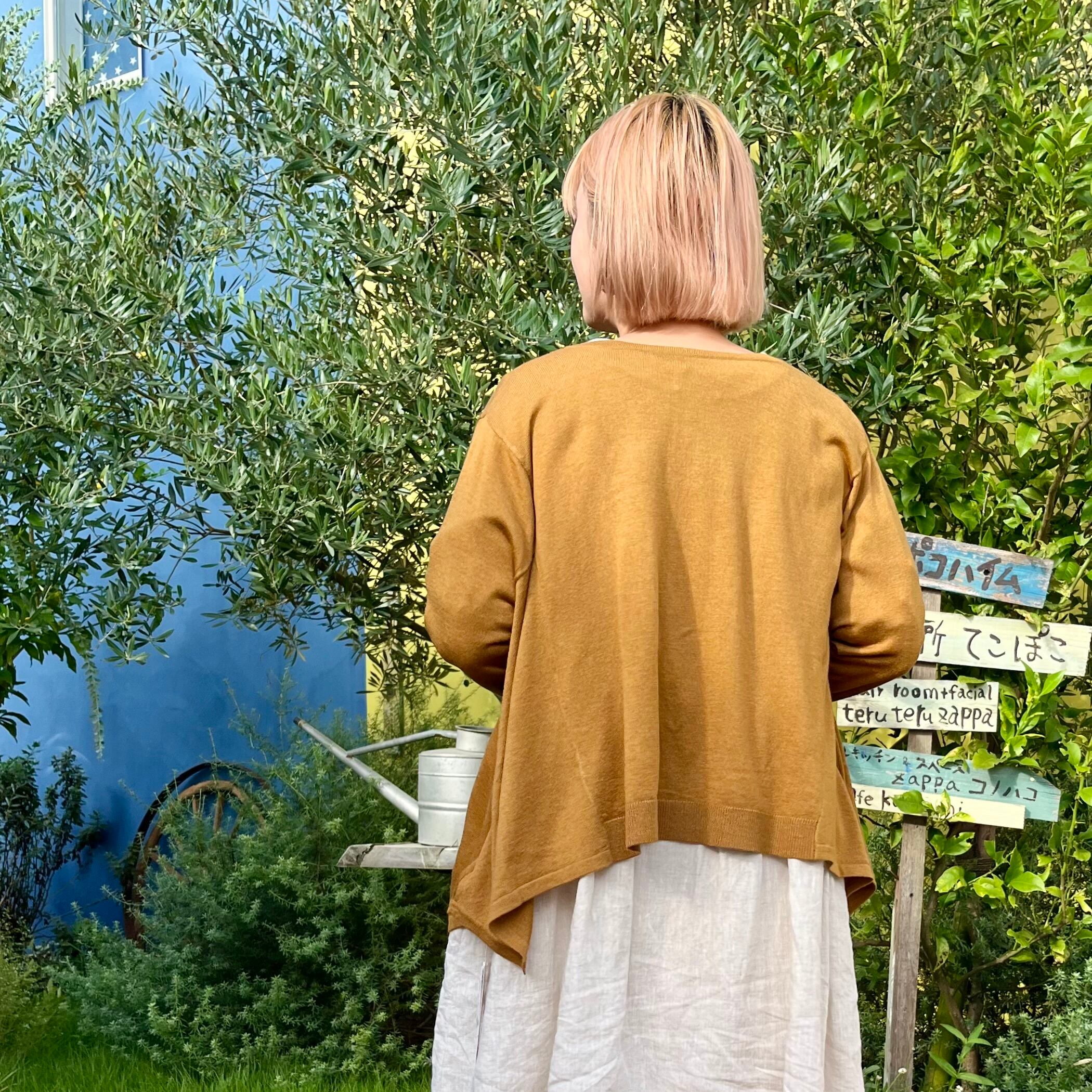 薄手のカーディガンなので、ブラウスやカットソーとの秋一番のレイヤードスタイルとしてもオススメです。