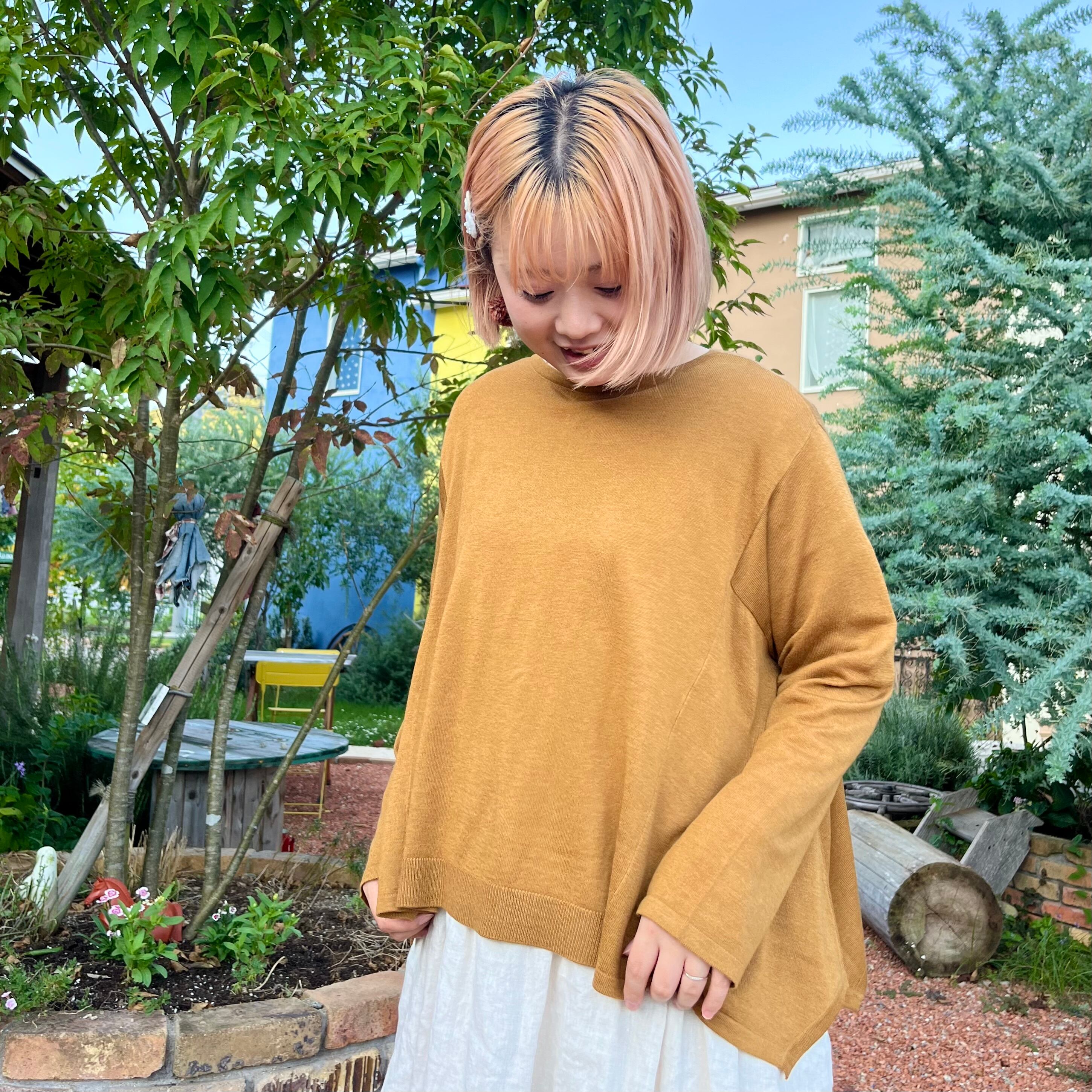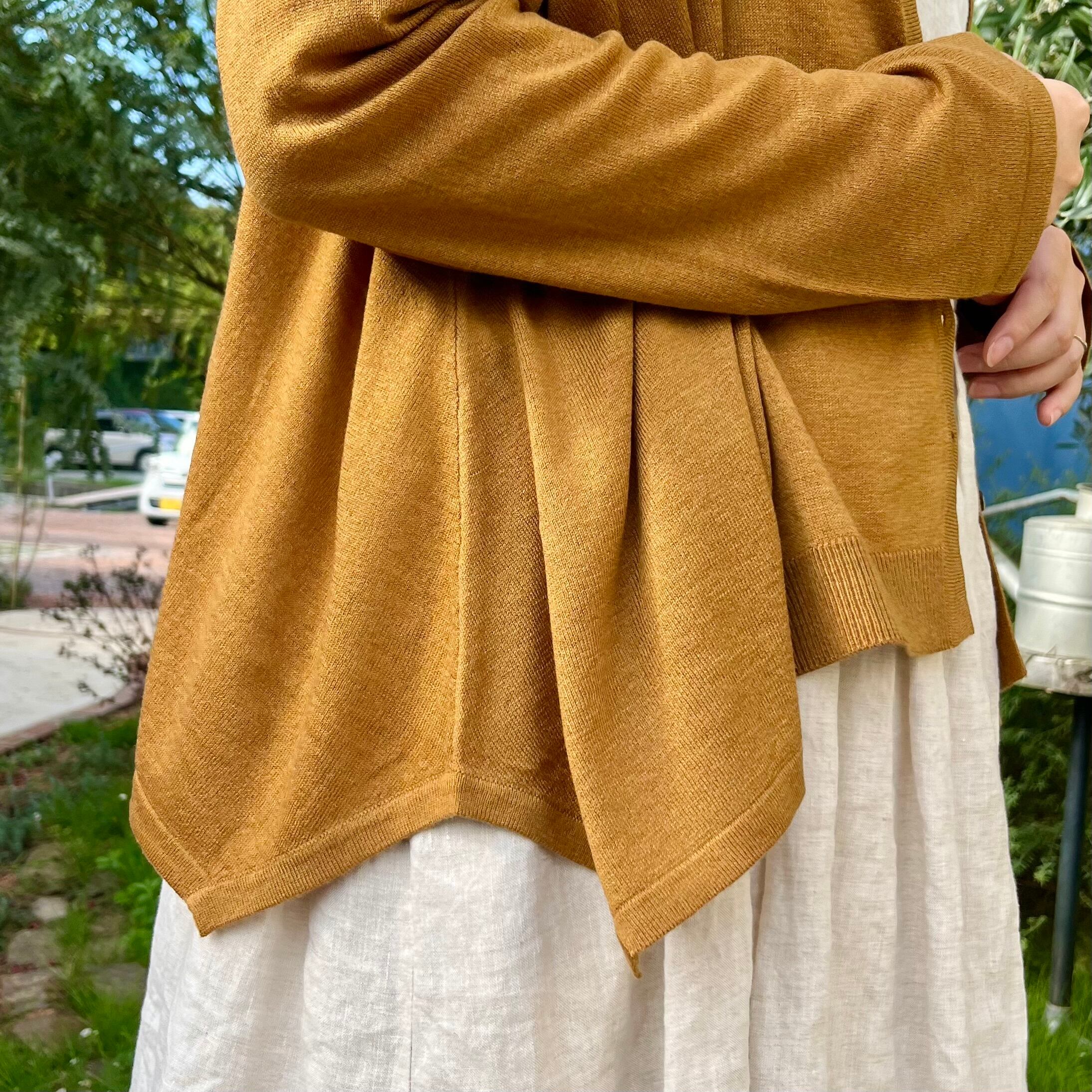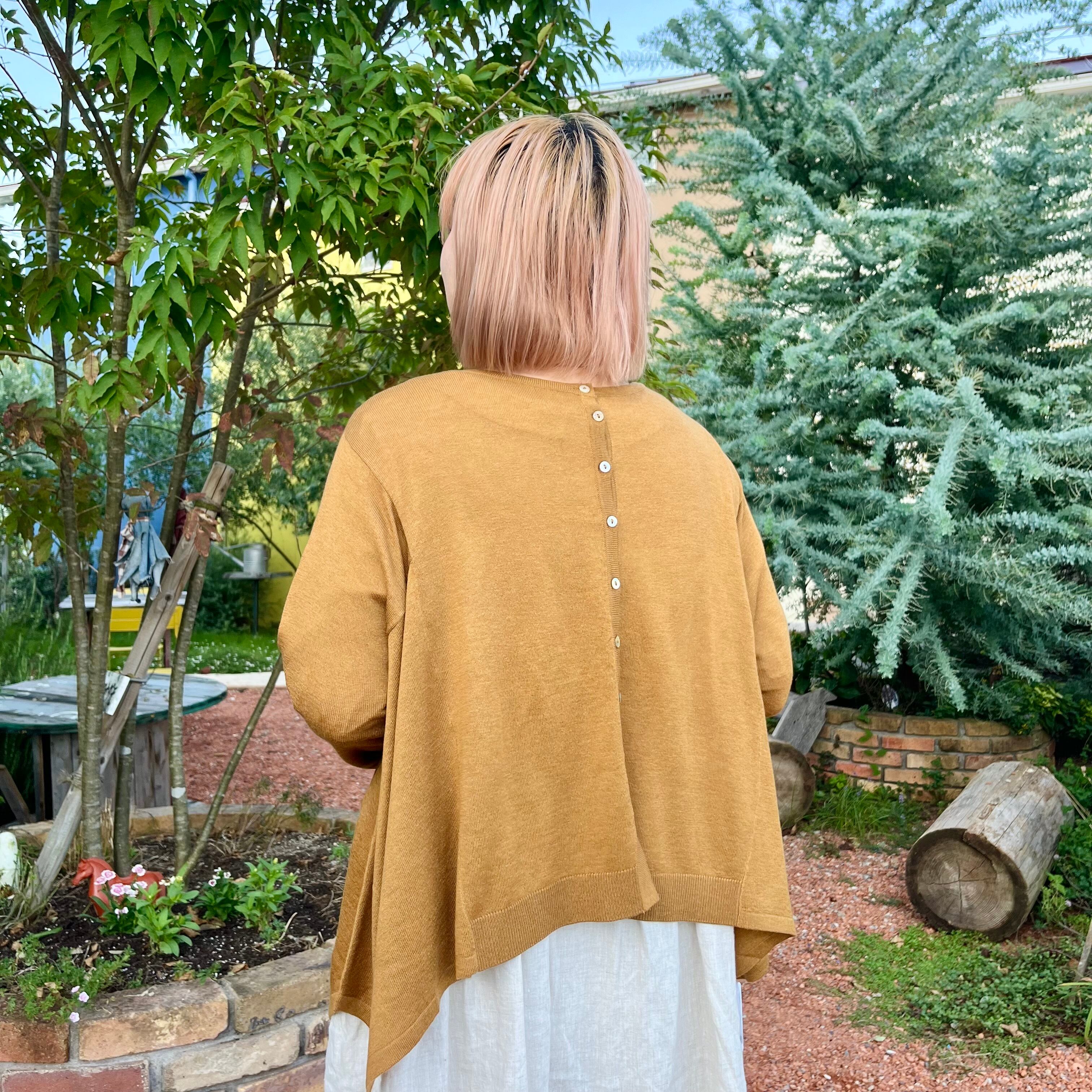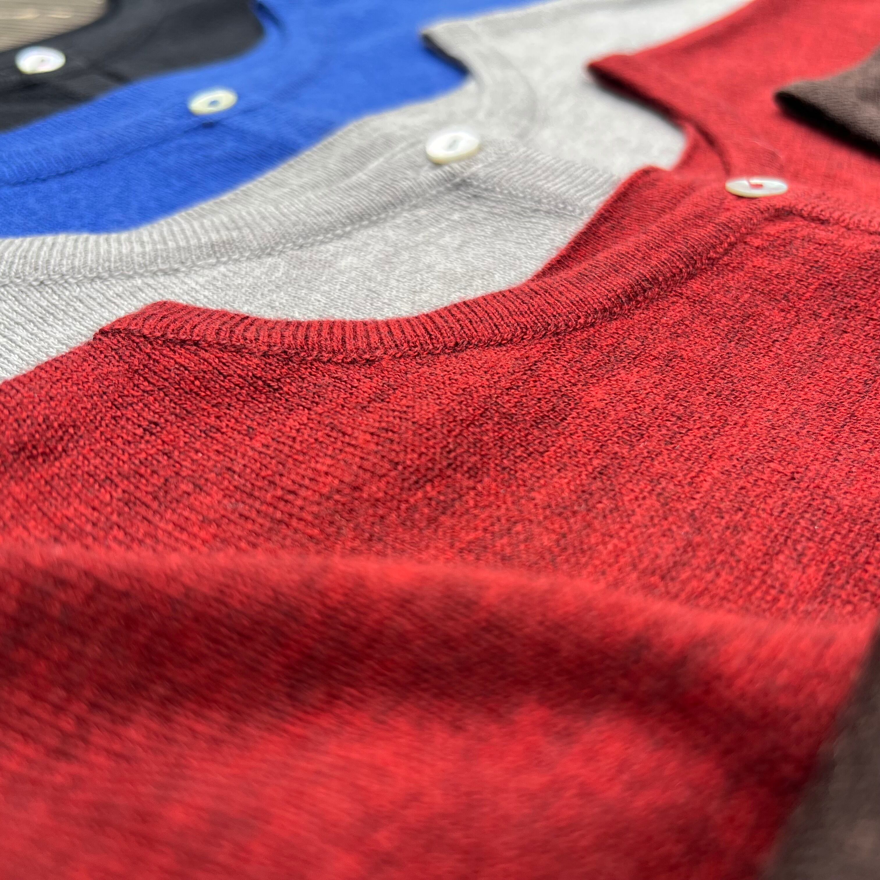 薄手のカーディガンなので、ブラウスやカットソーとの秋一番のレイヤードスタイルとしてもオススメです。