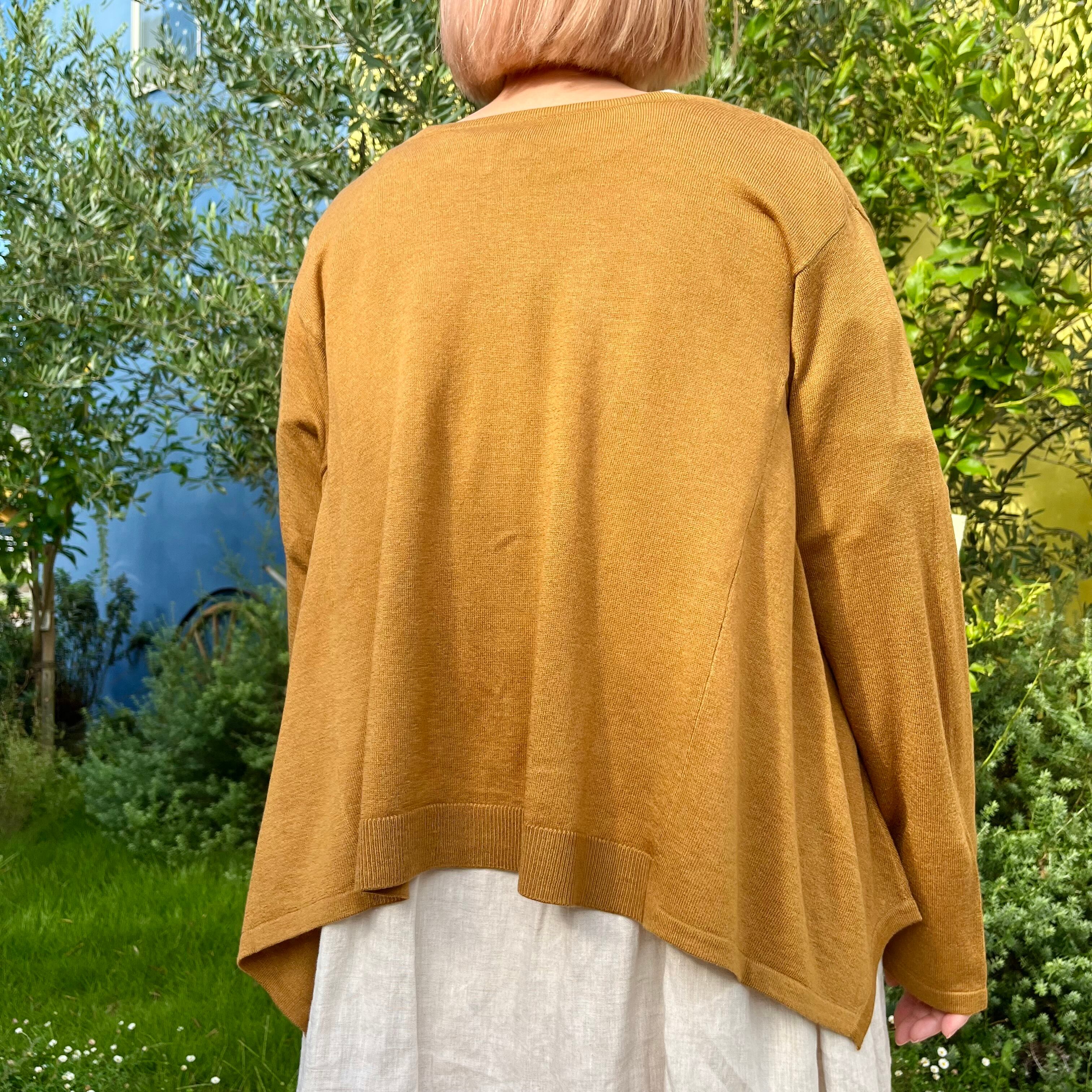 前後着用可能な肌触りの良いフレアカーディガンです。