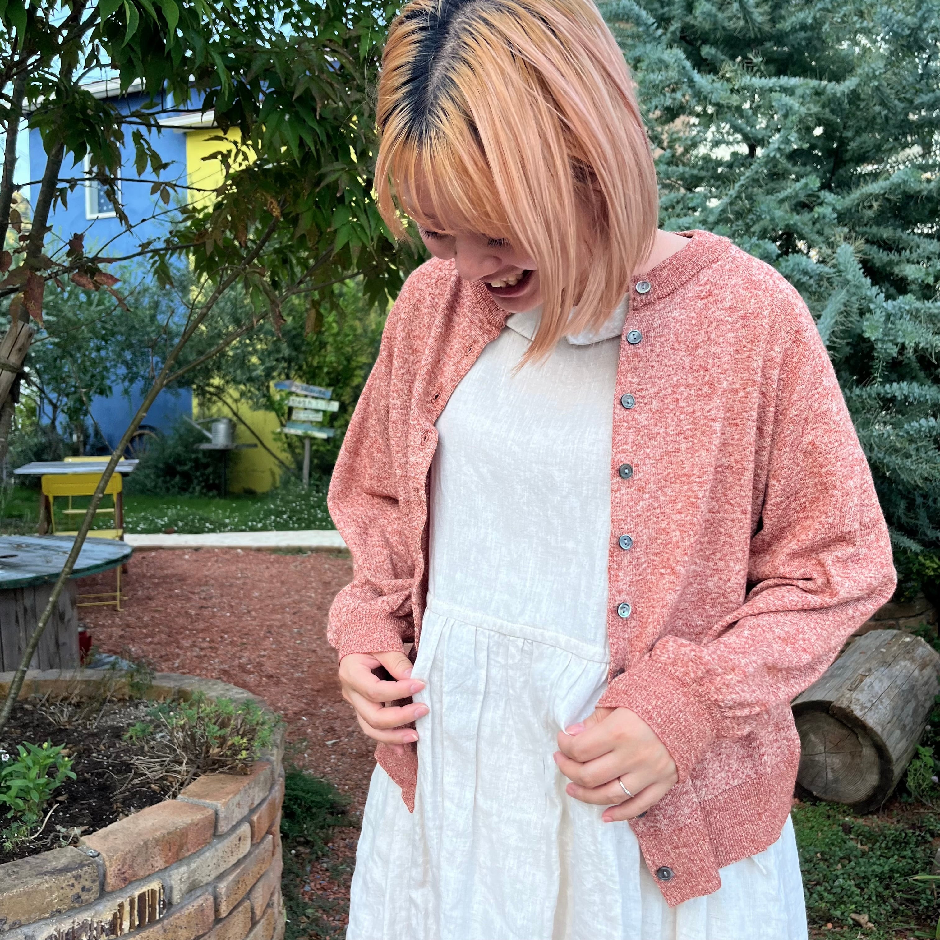 25s–149 リネンウール混ニットハイゲージカーデ