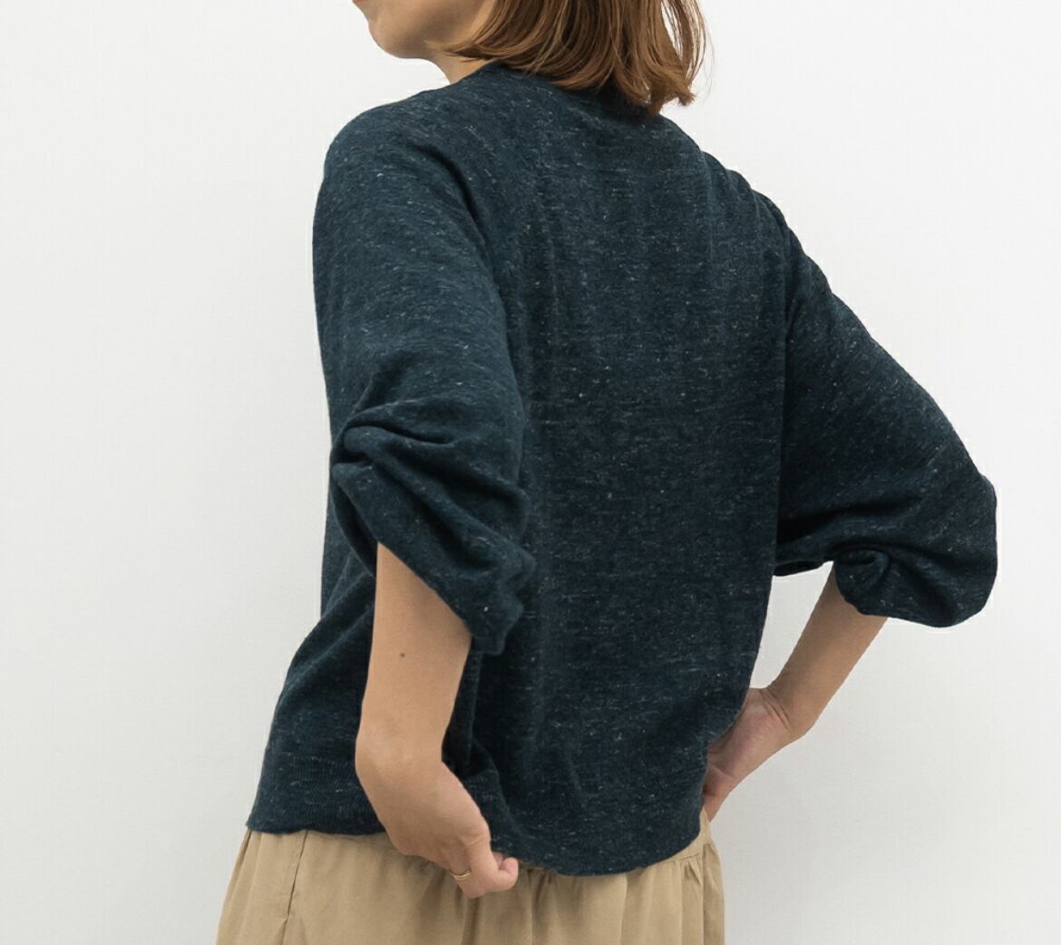 リネンやウールの風合いが混ざったナチュラルな雰囲気でほんのり落ち感のある天竺編みニットです。