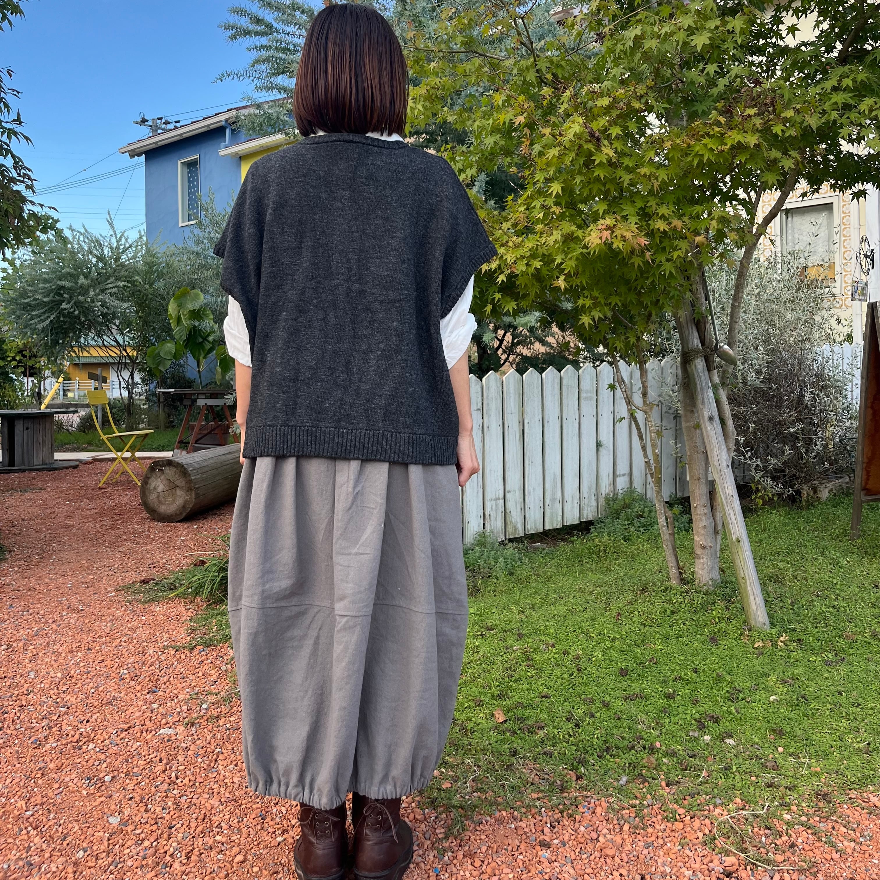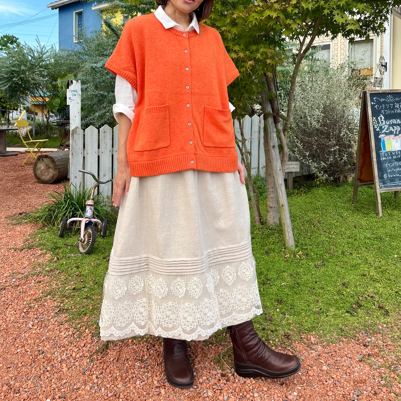 ■スタイリッシュなドロップベストデザイン ゆったりとしたシルエットのドロップベストは、レイヤードスタイルを楽しむのに最適です。