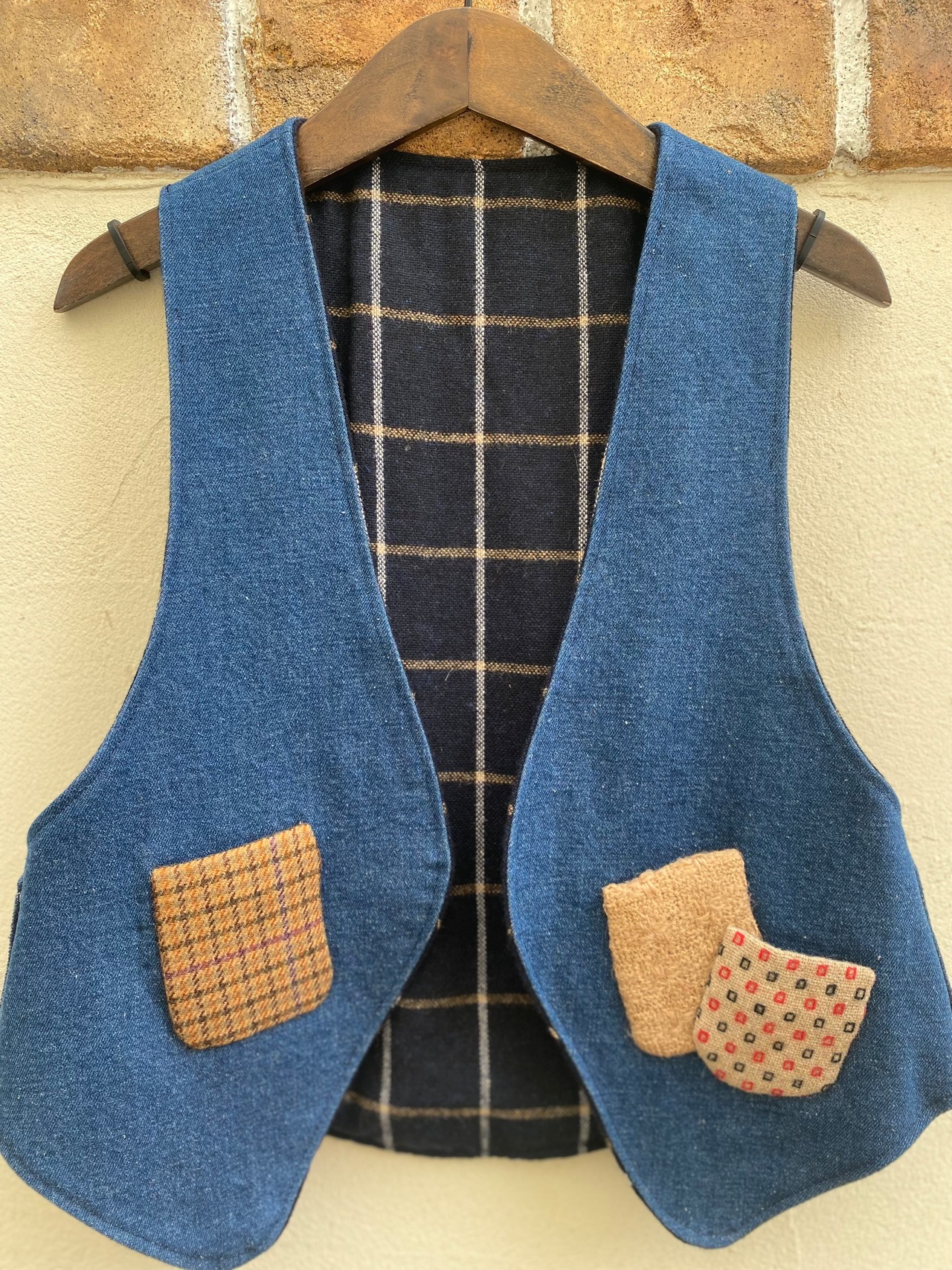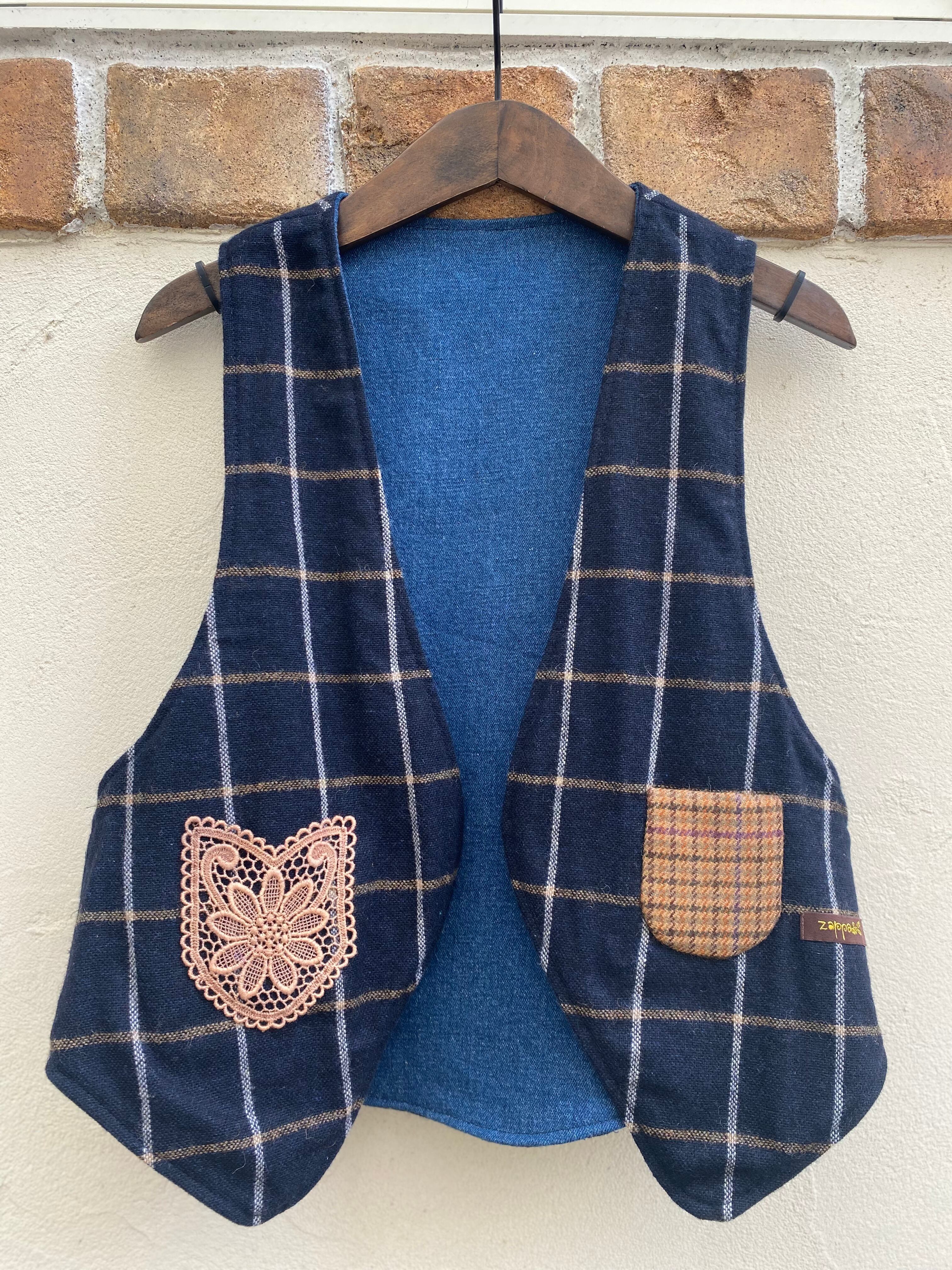 25s-173 リバーシブルベスト(デニム×チェック)アレンジ