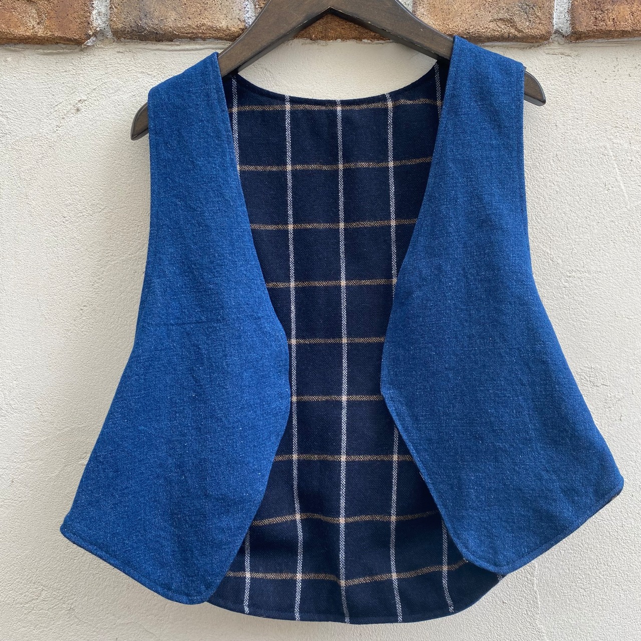 デニムとチェックの異なる表情を楽しめるリバーシブルベストです!カジュアルなデニム面は日常使いにぴったりで、チェック面はキュートな印象。気分やシーンに合わせて簡単にスタイルチェンジができる便利なアイテムです。これ一着でコーディネートの幅が広がりますので、普段のお出かけや特別な日にも重宝します♪