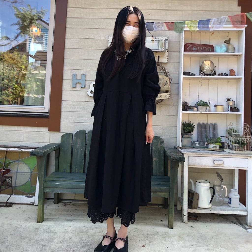 しっかりした肉厚リネンのシックな大人のワンピース。