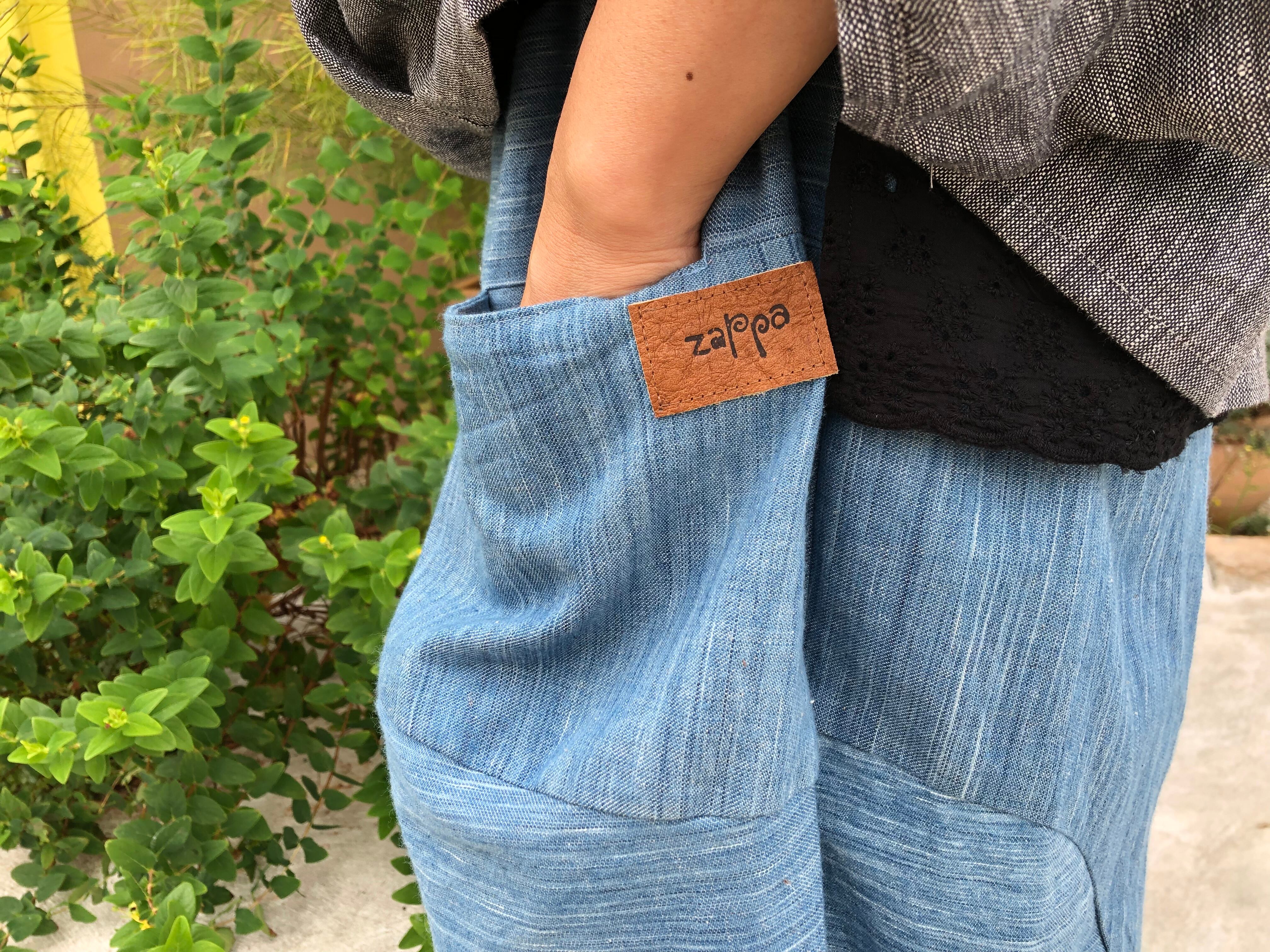 21s-052 糸から染める藍染めデニムのつぎはぎパンツ
