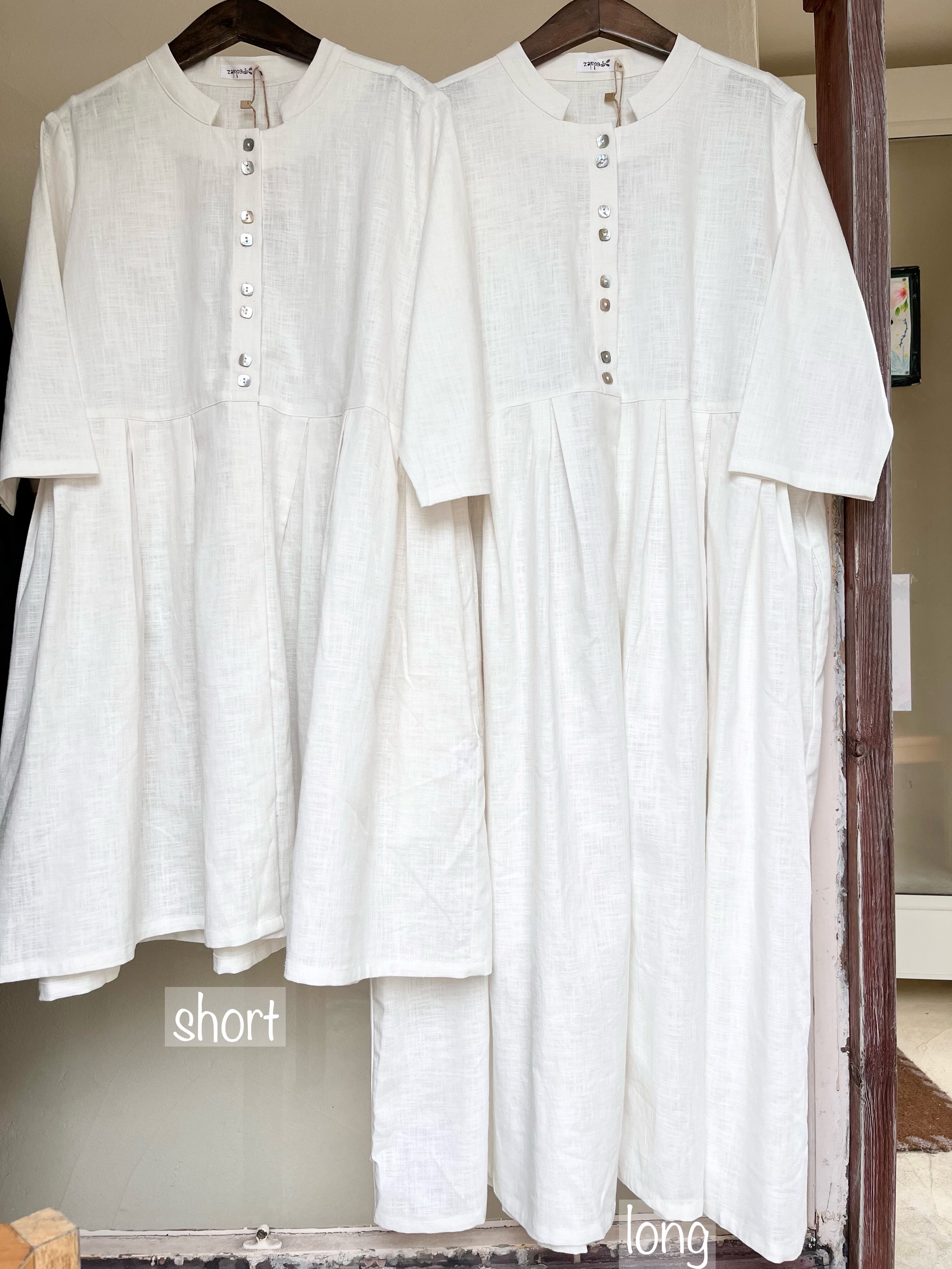 24s−026【新色追加】ニコニコボタンのリネンワンピース(ロング丈)