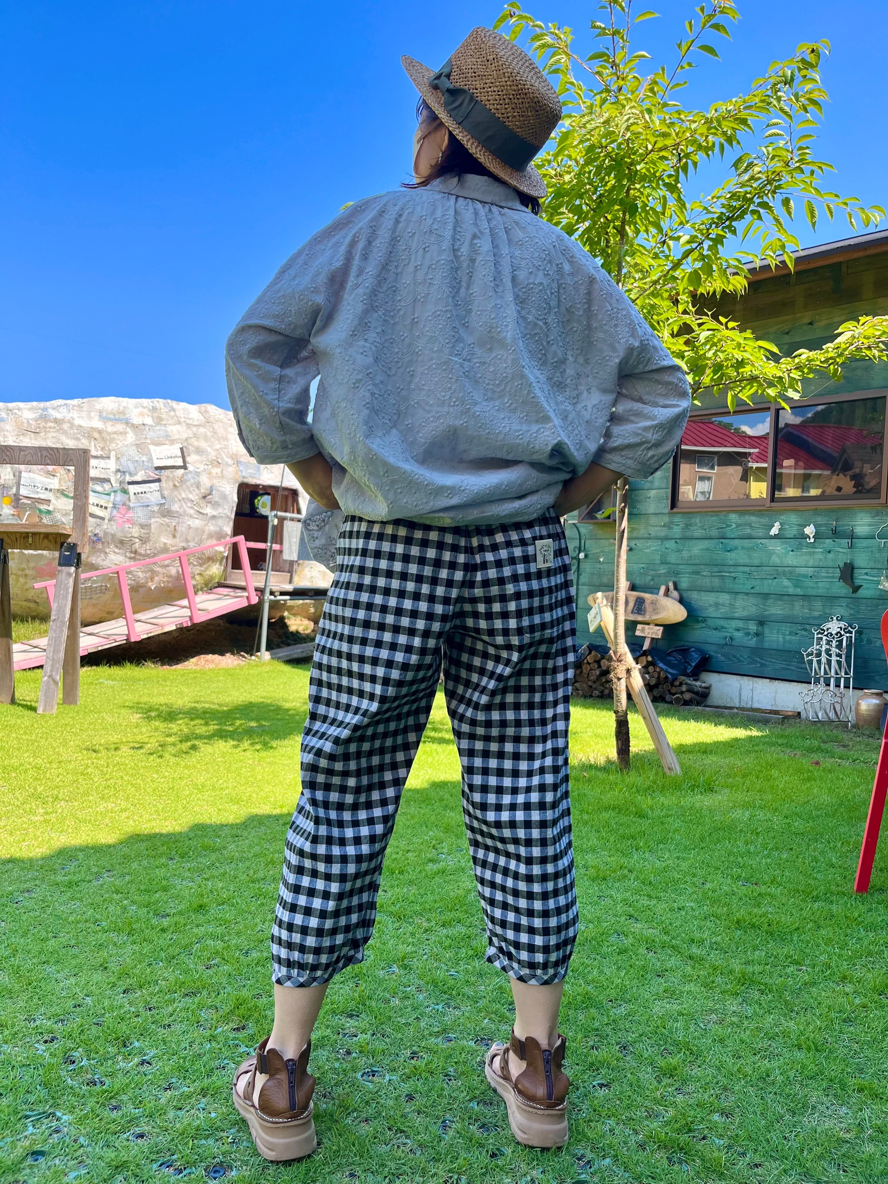23s-048 ストレッチチェックのかぼちゃパンツ