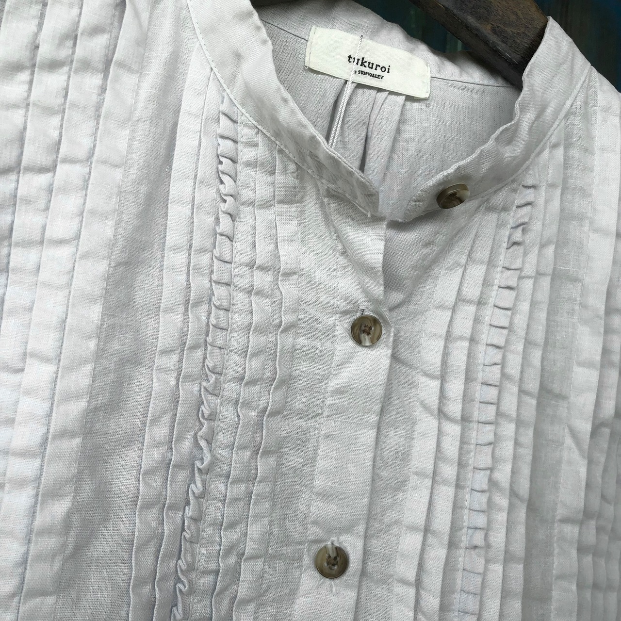 さらりとした肌触りのコットンリネン平織ピンタックブラウス。